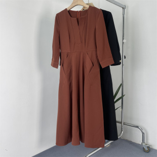 长袖 大码 连衣裙 简约百搭OL风小V领修身 小众柜定制余单