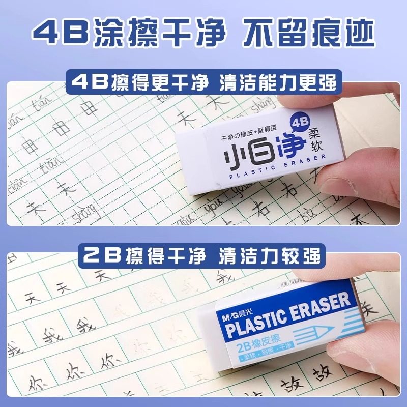 晨光小白净橡皮擦无屑神器小学生专用4B不留痕擦 干净无毒少屑考试专用儿童象皮擦无碎屑美术用素描高光像皮