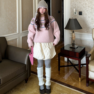 套装 复古费尔岛高领毛衣外套针织上衣女短裤 美式 柒月末