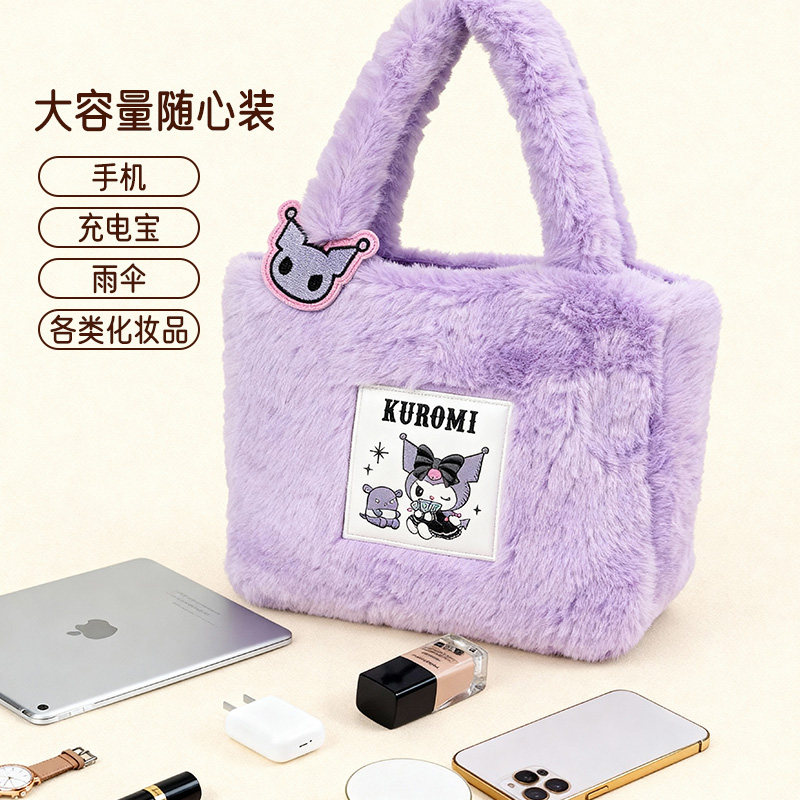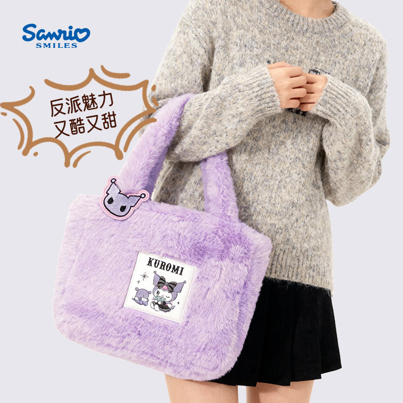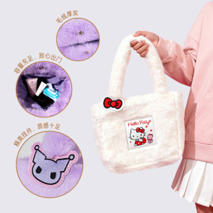 三丽鸥HelloKitty凯蒂猫手提包女小拎包2025新款 毛绒单肩包包冬季