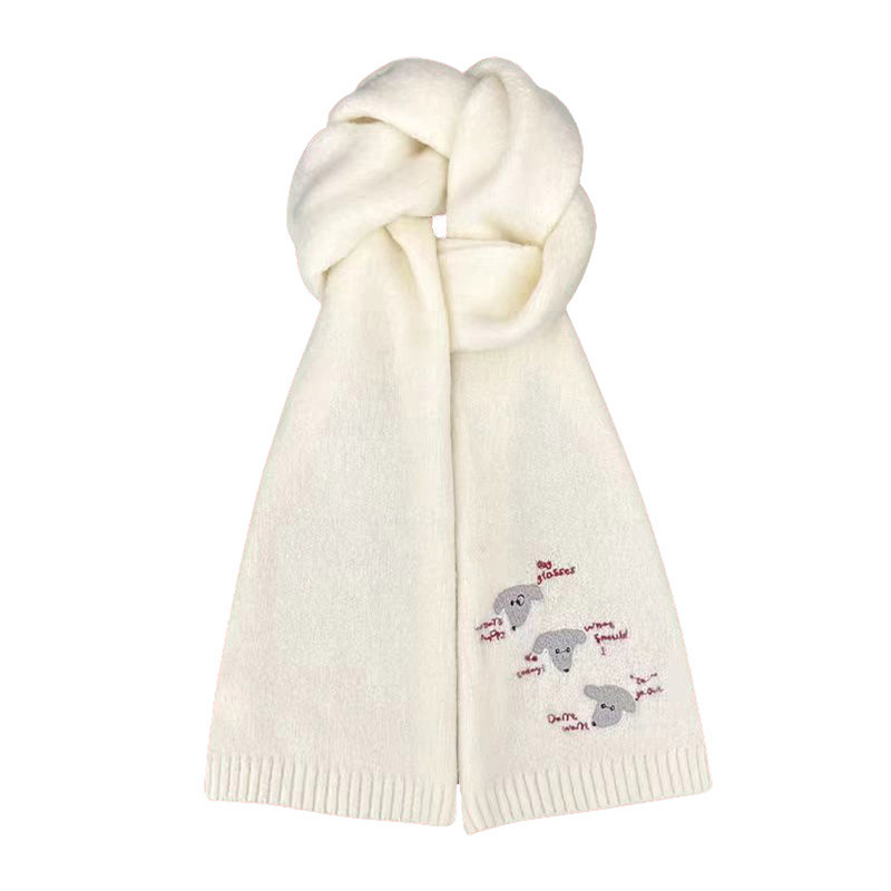 日系新款 学生学院风百搭氛围感围脖 可爱小狗刺绣针织围巾女秋冬季