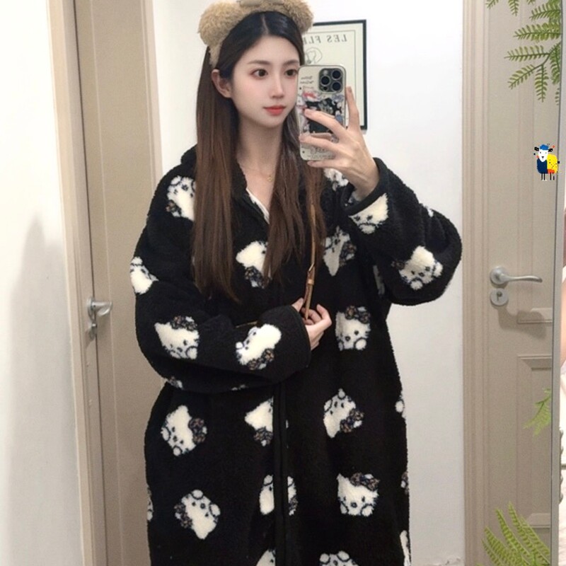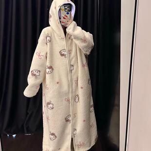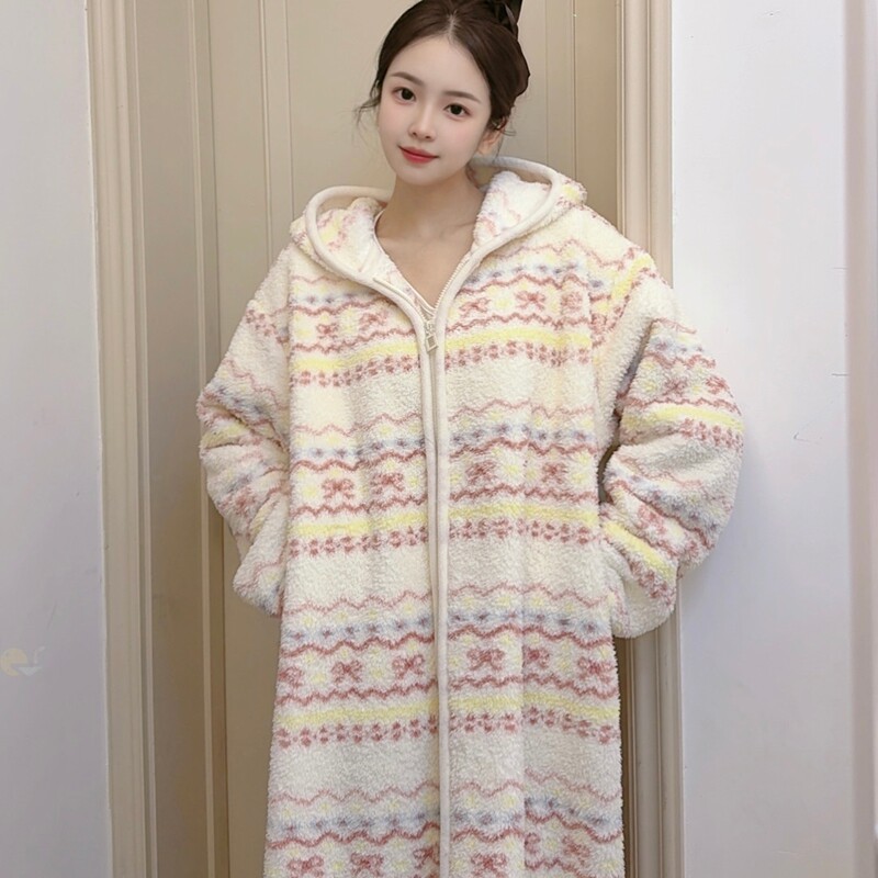 加厚长袍冬季 行走 睡袍2025新款 秋冬款 大被子连帽米粒绒睡衣女款