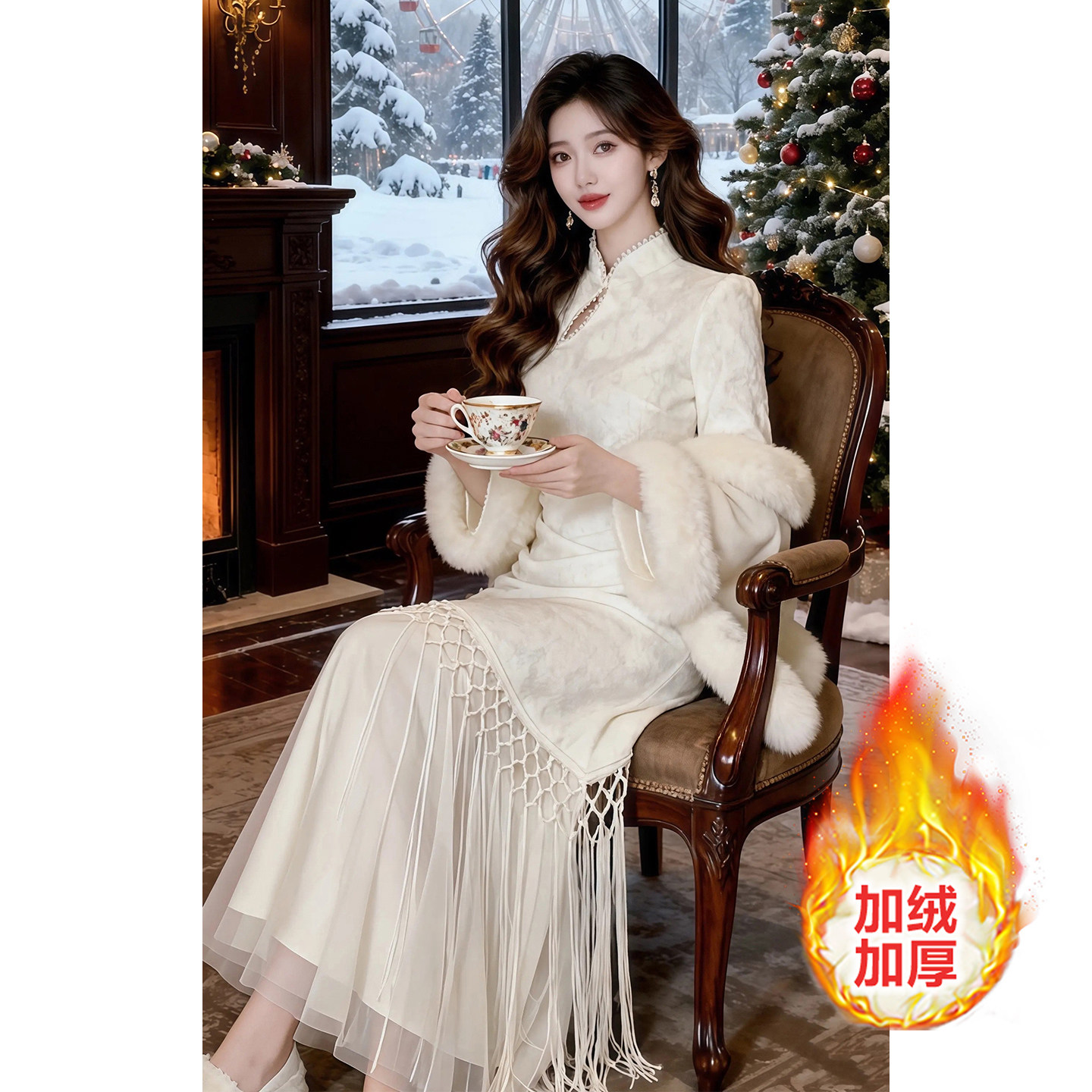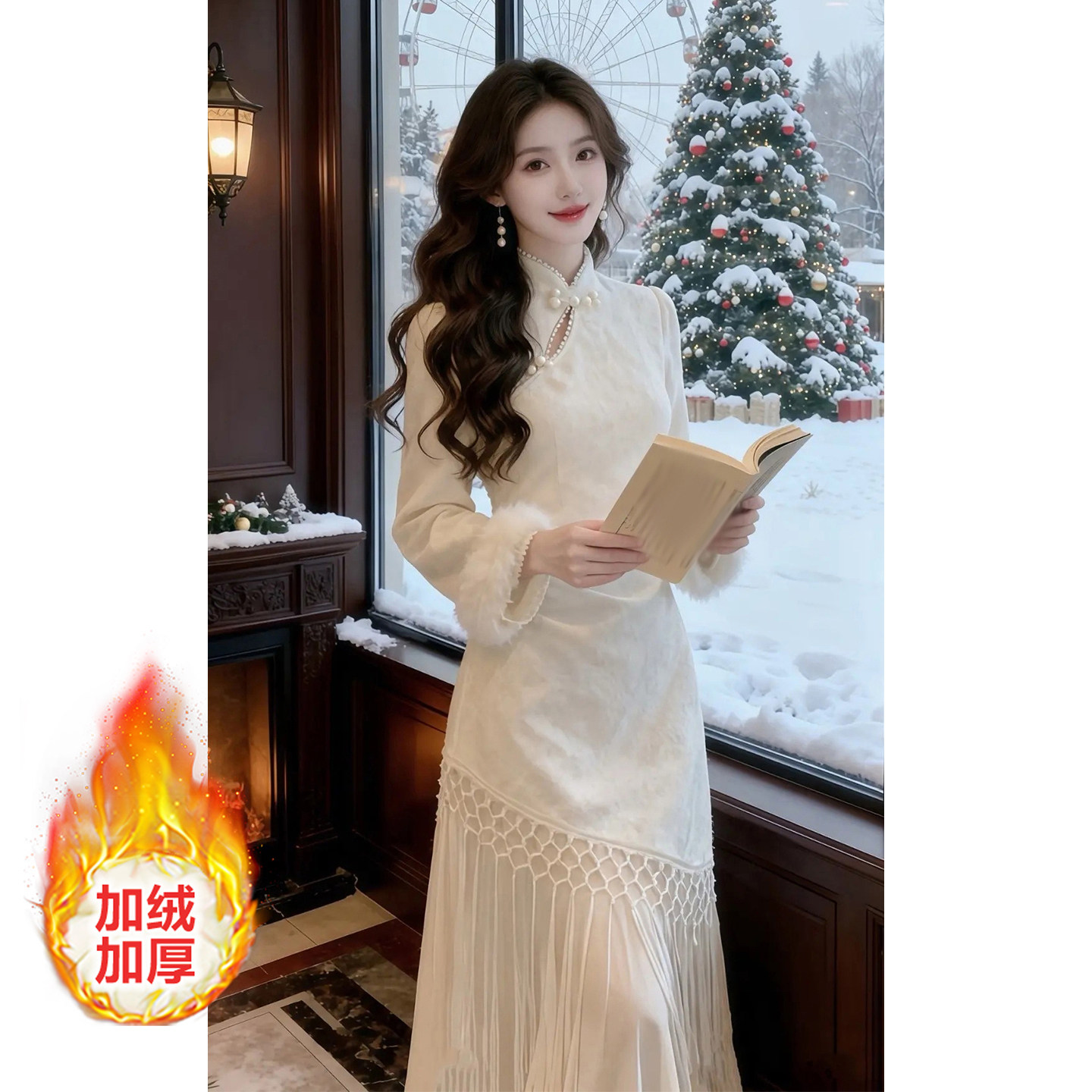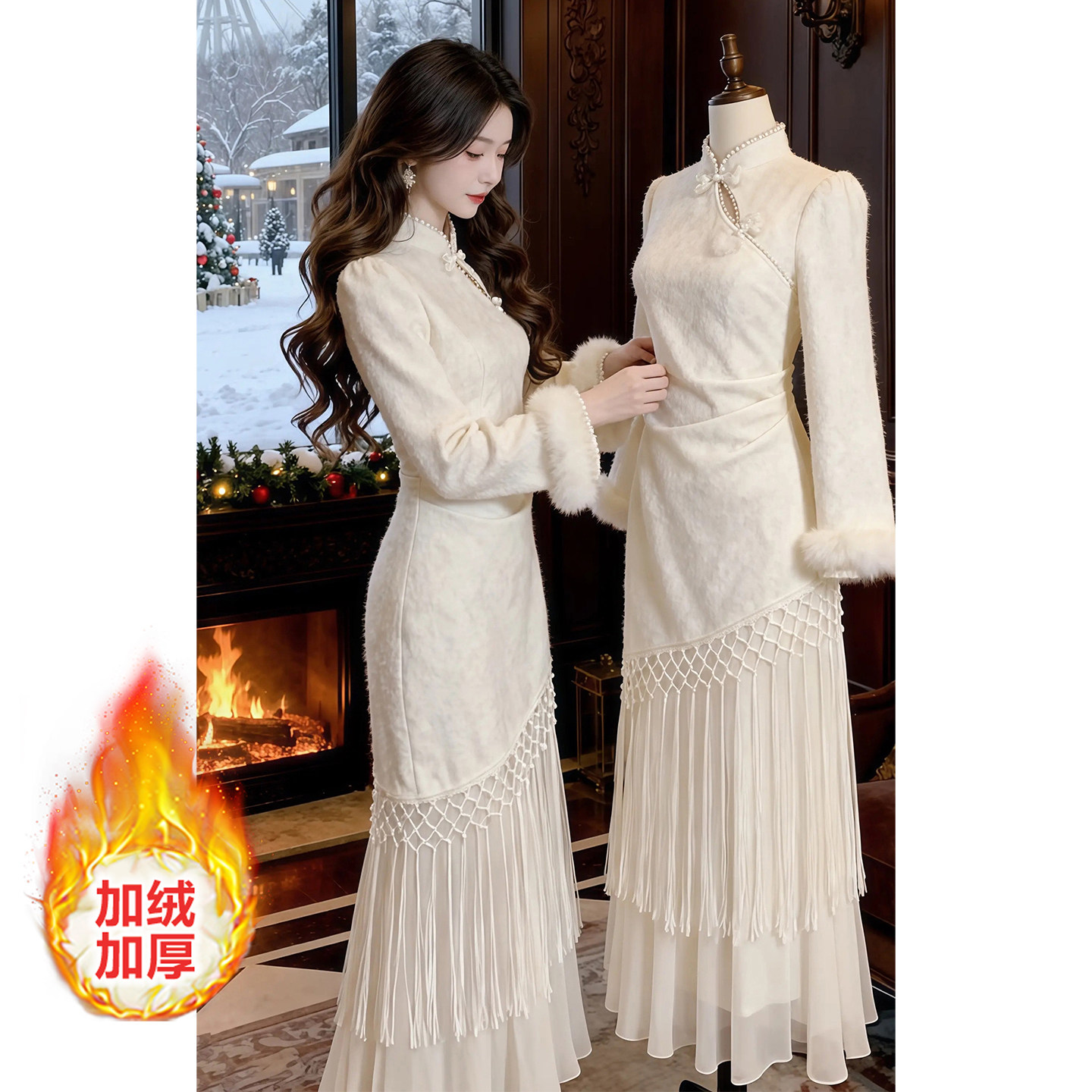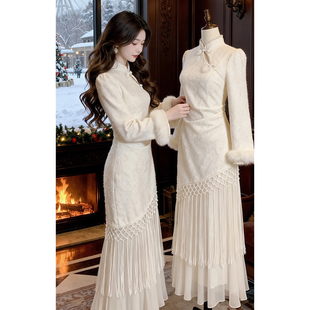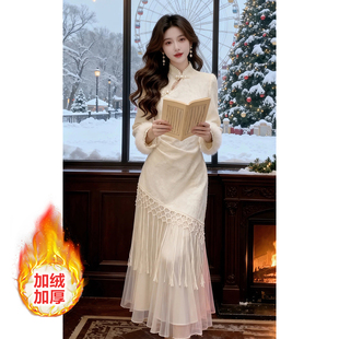 流苏长裙 2025秋冬新款 新中式 气质国风加绒加厚改良旗袍连衣裙女装