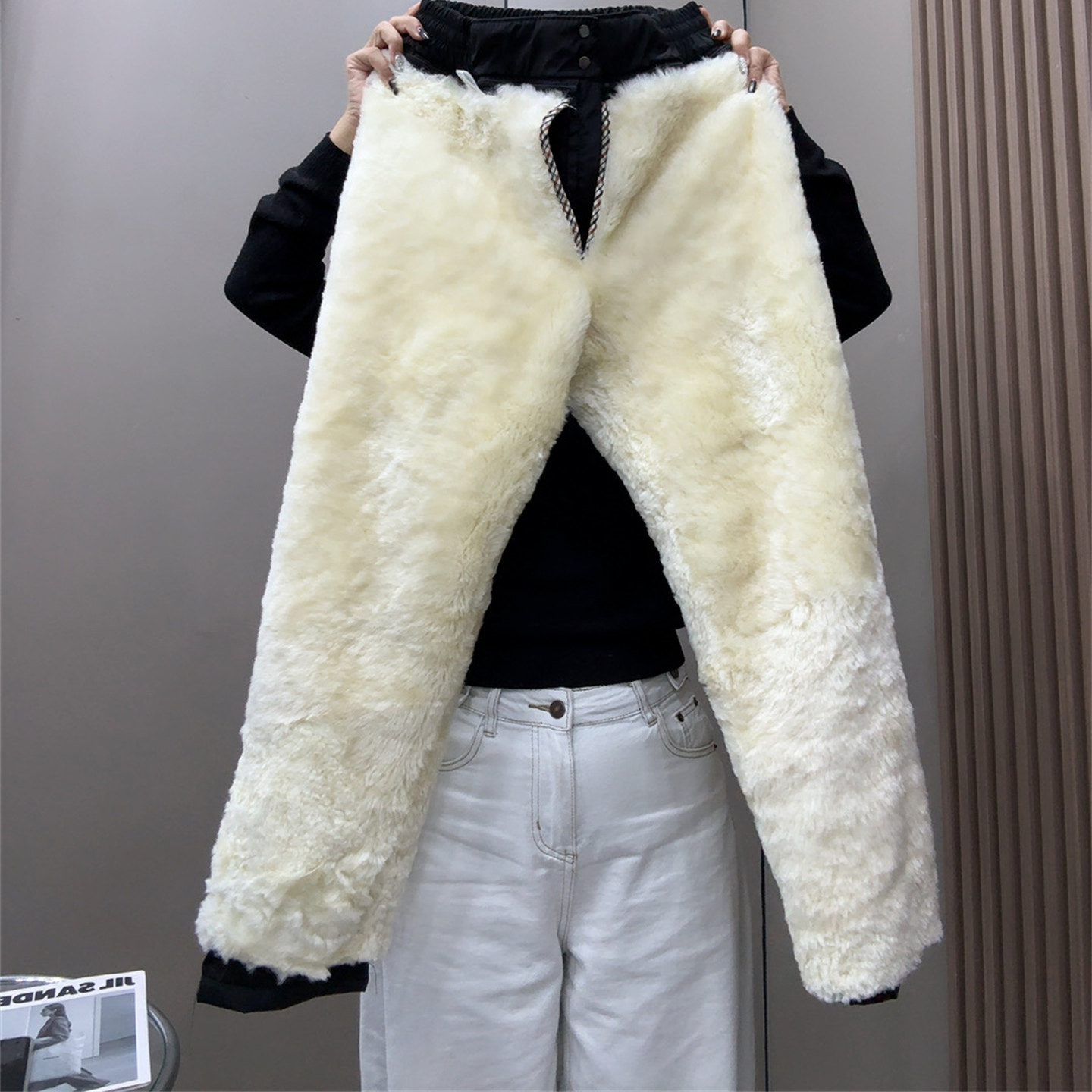 中老年皮毛一体纯羊毛裤 防寒裤 子男士 高腰棉裤 加厚保暖羊皮裤 冬季