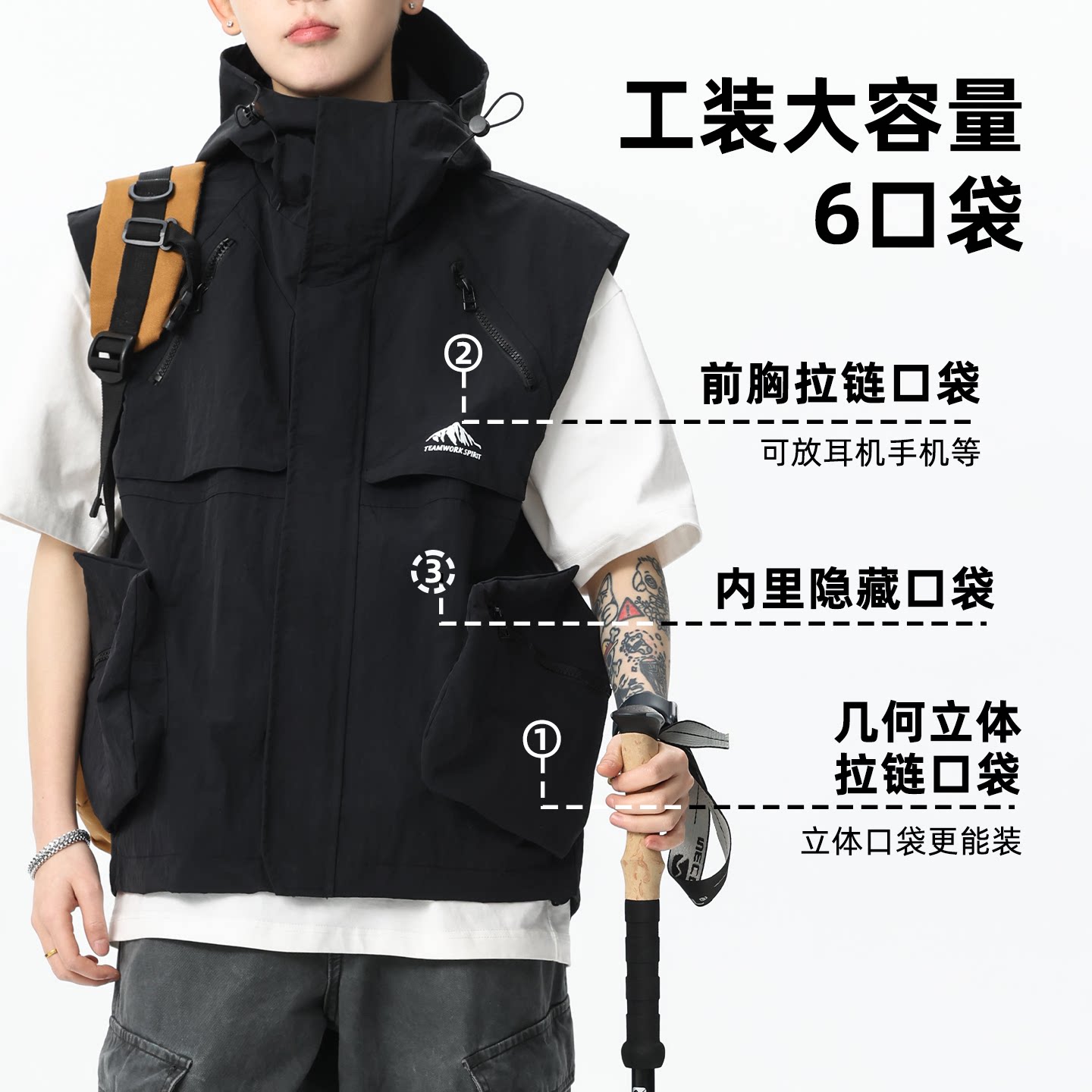 男装 工装 坎肩背心外套宽松休闲潮胖子加肥加大大码 新款 马甲男春季