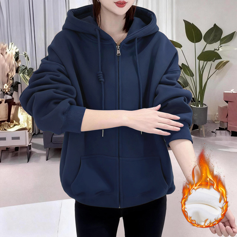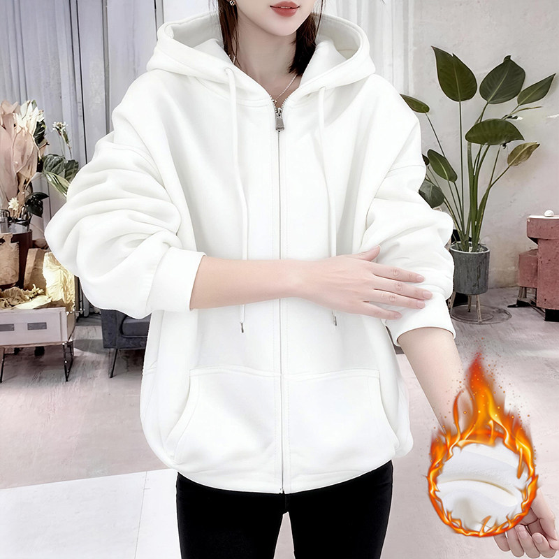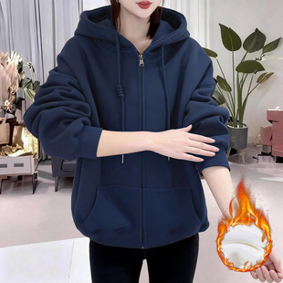 大码 显瘦带帽厚外套 洋气加绒酒红色卫衣女连帽ins轻熟高级感开衫