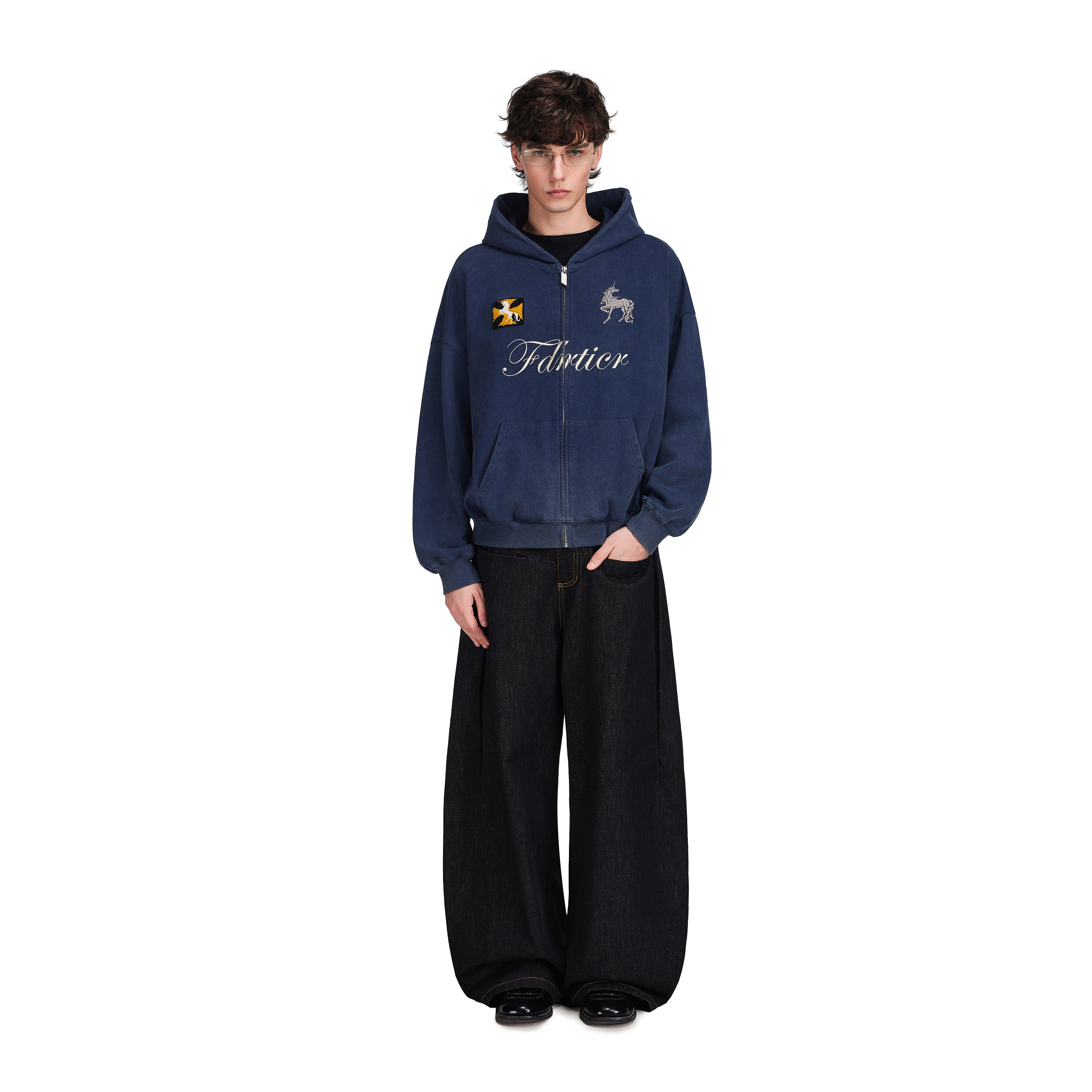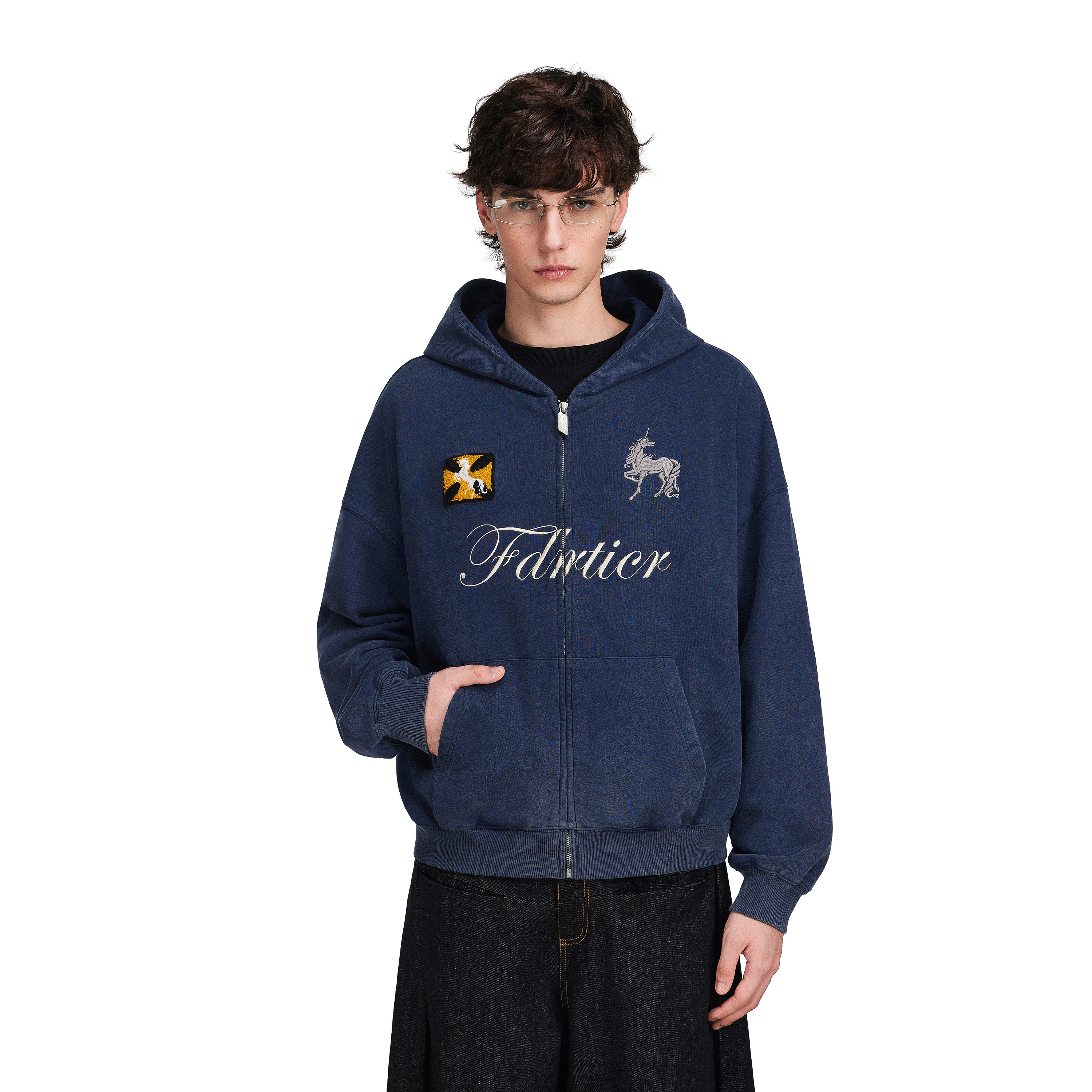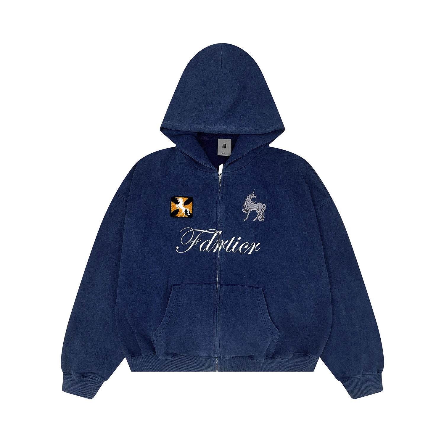 国潮字母刺绣玫红色卫衣连帽潮牌男女oversize情侣外套2025冬新款