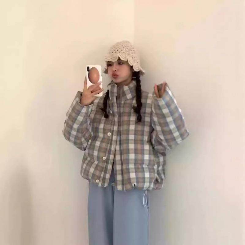 现货 egg羽绒服韩国格子保暖短款 Nothing Narchi 外套 Written