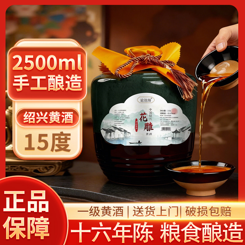 正宗绍兴花雕酒纯粮酿造传统陈年黄酒手工加饭酒窖藏特级婚宴送礼