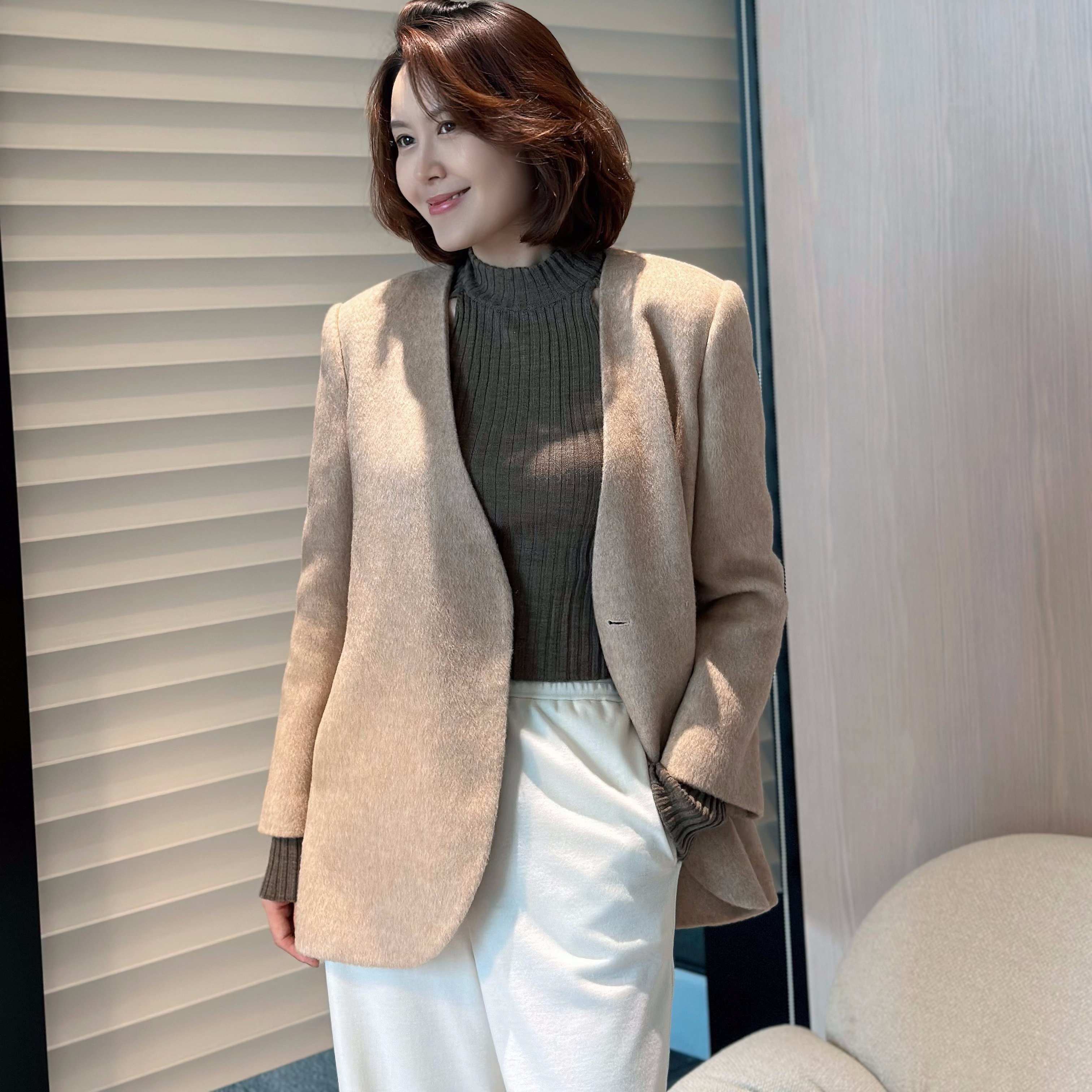 秋冬装 FAMINI无领西装 外套骆驼绒气质高级感纯色2025新款