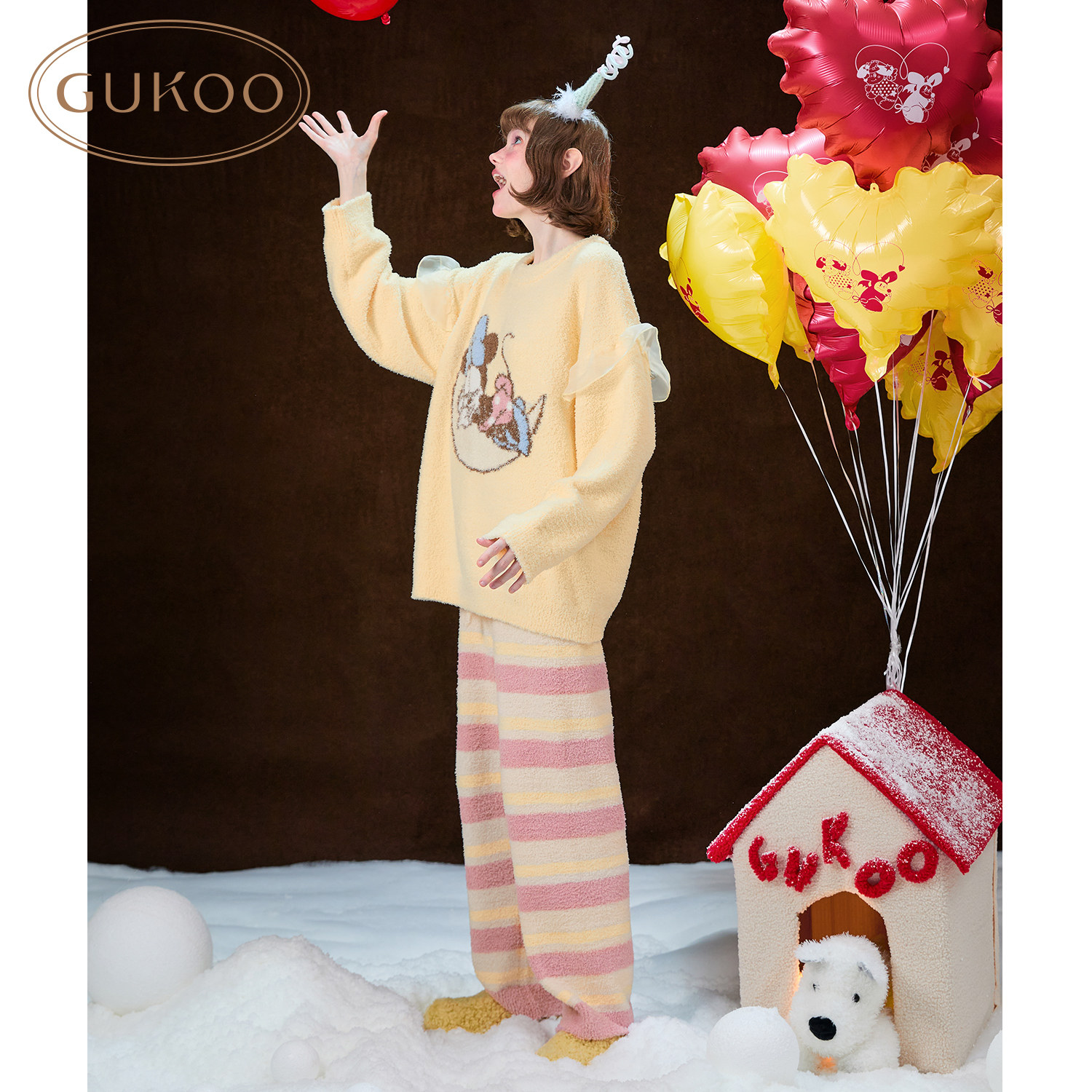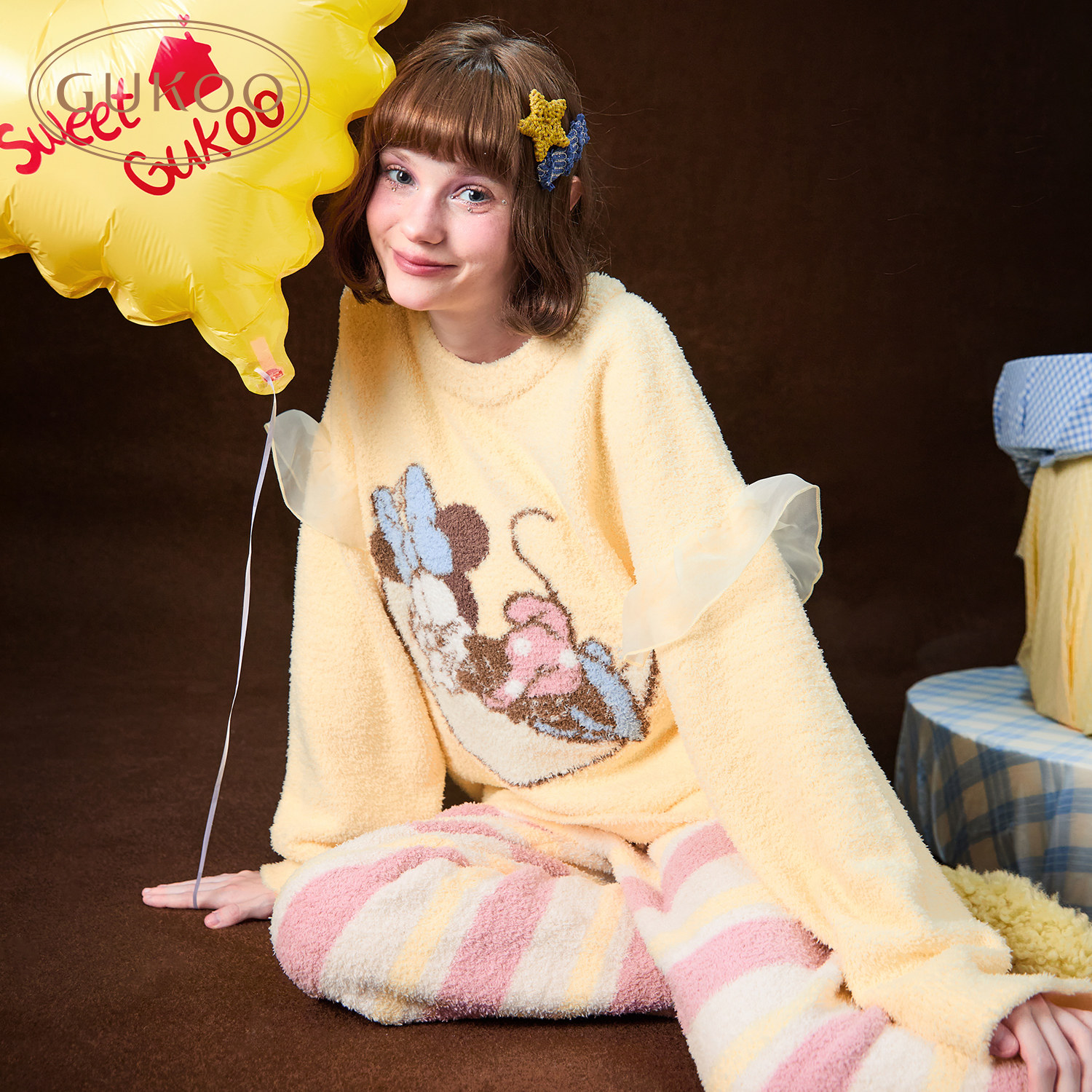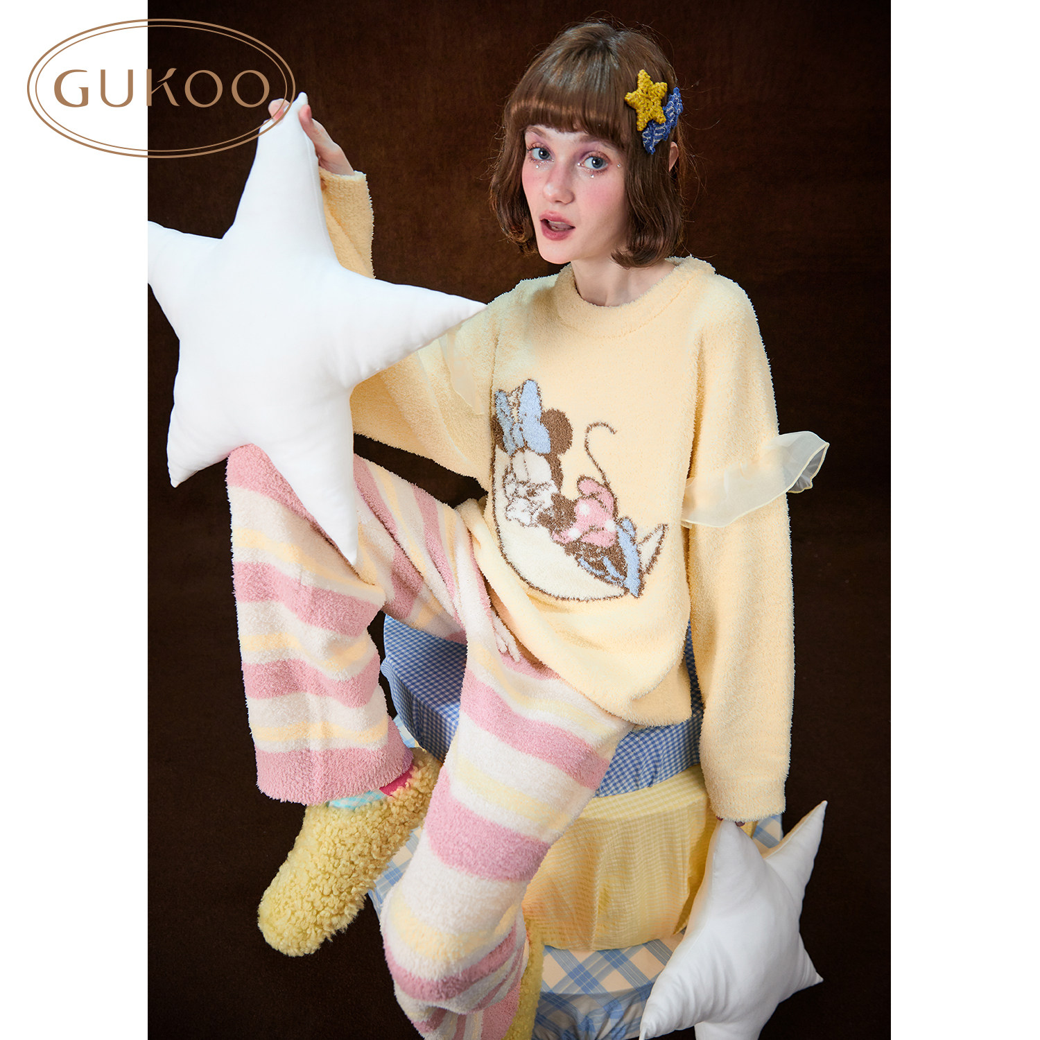 半边绒保暖女士家居服套装 迪士尼联名新款 果壳睡衣女冬季 Gukoo