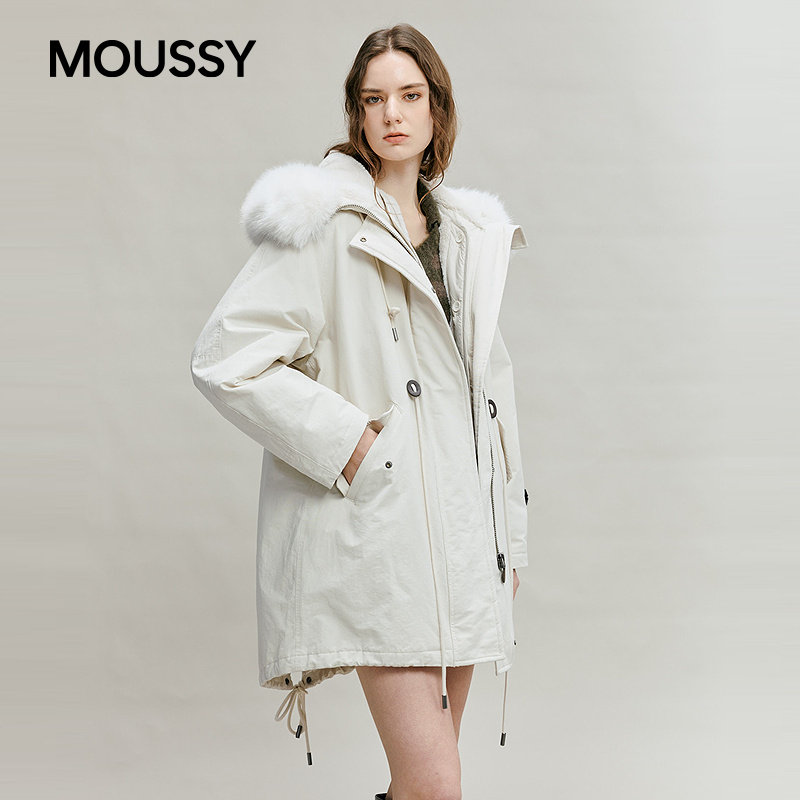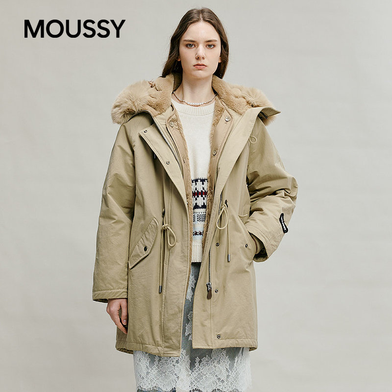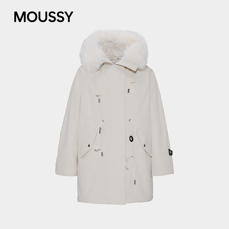 字母印花N3B抽绳毛领派克大衣028IAA30 新品 1087 春季 MOUSSY