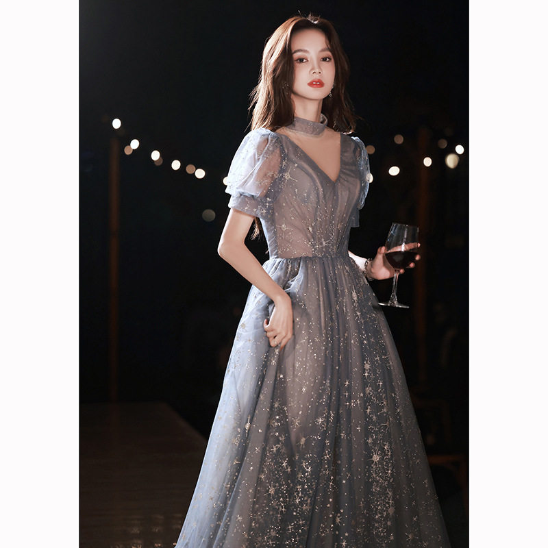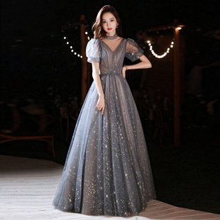 端庄晚礼服裙冬女轻奢小众高级感气质宴会高端大气主持人年会艺考