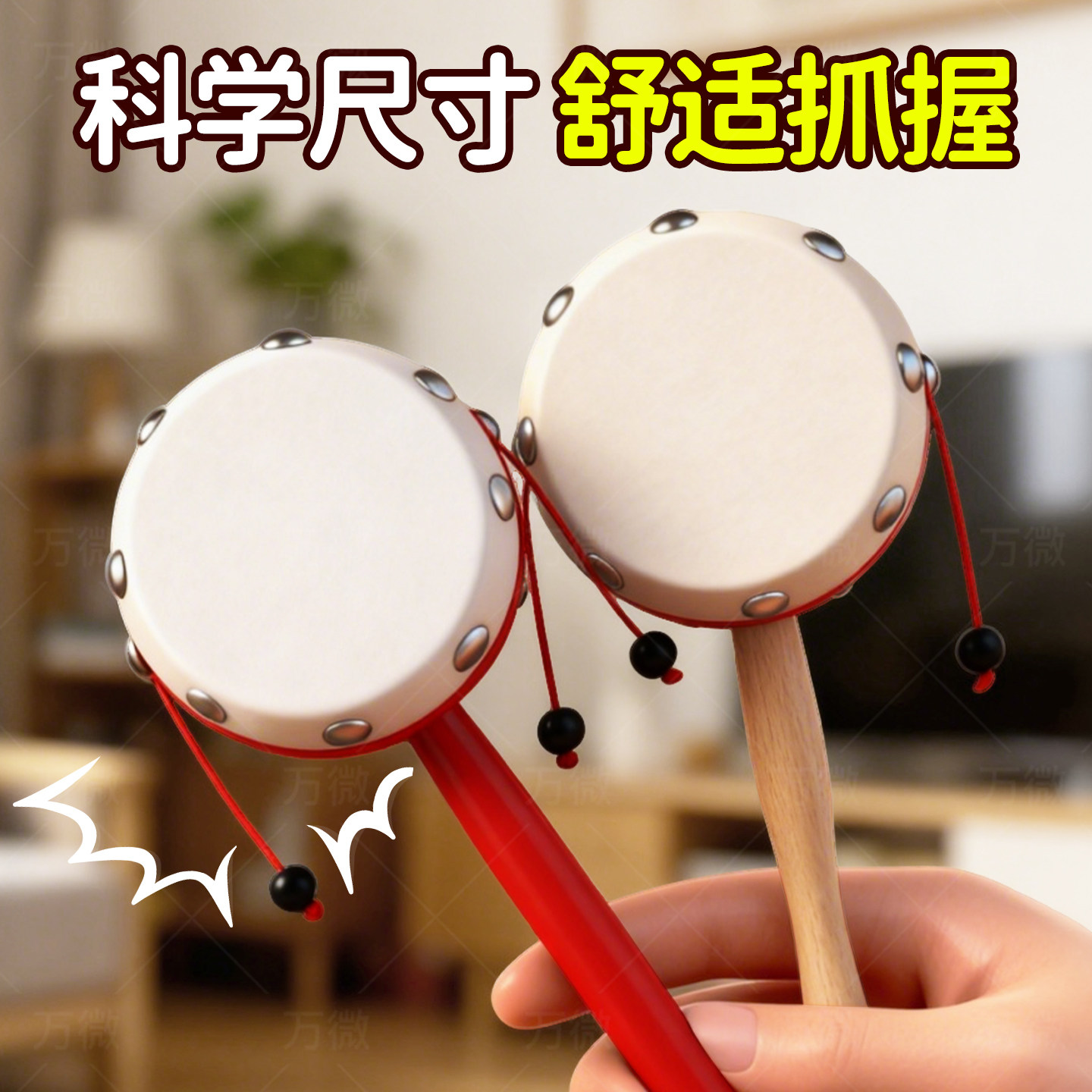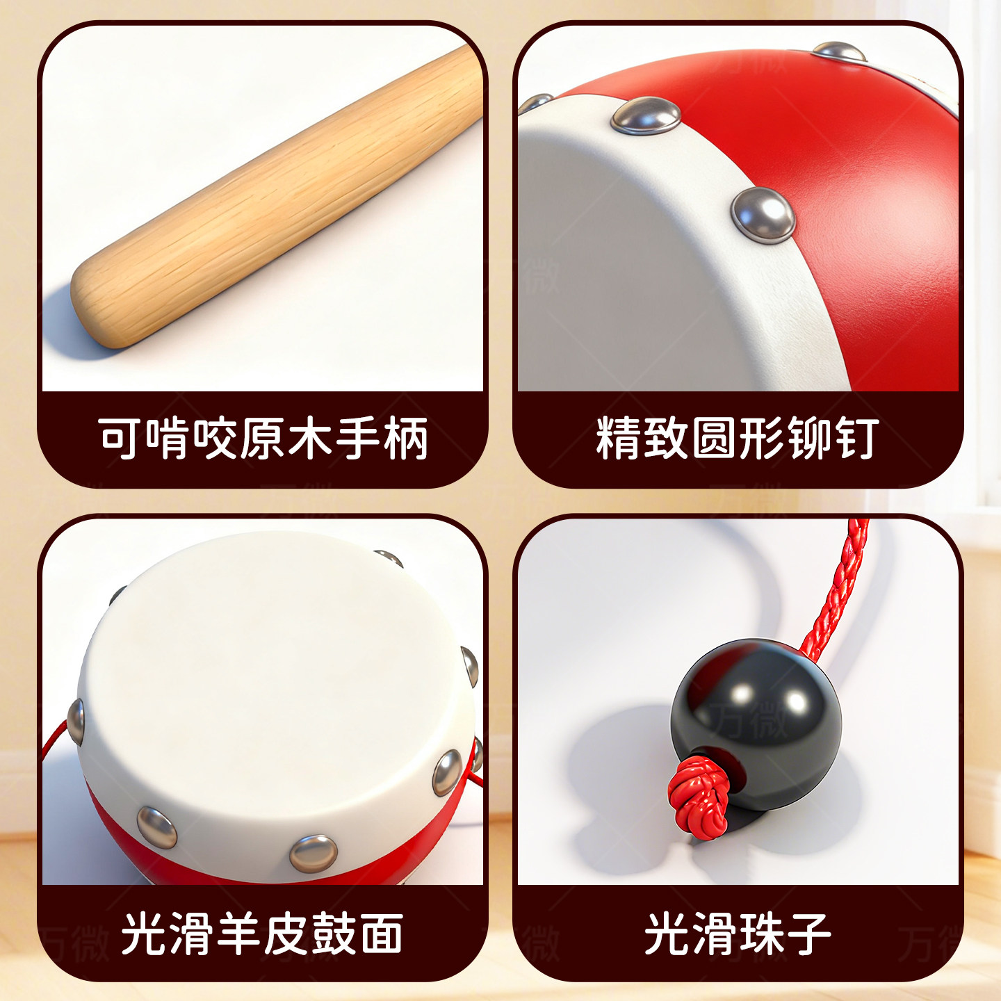 中国风传统拨浪鼓双面羊皮鼓新生儿玩具0 1岁宝宝早教益智手摇铃