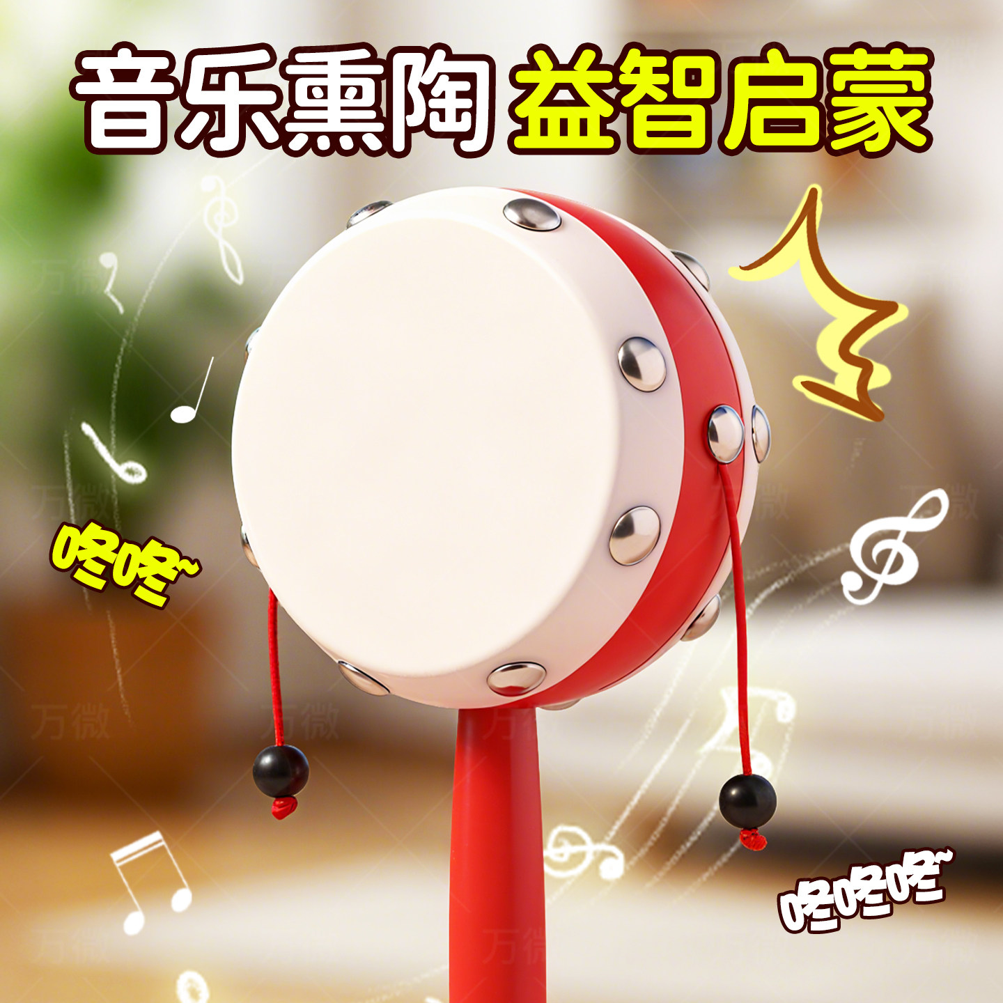 拨浪鼓老式 1岁可啃咬12个月 手摇铃婴儿宝宝新生儿训练乐器玩具0
