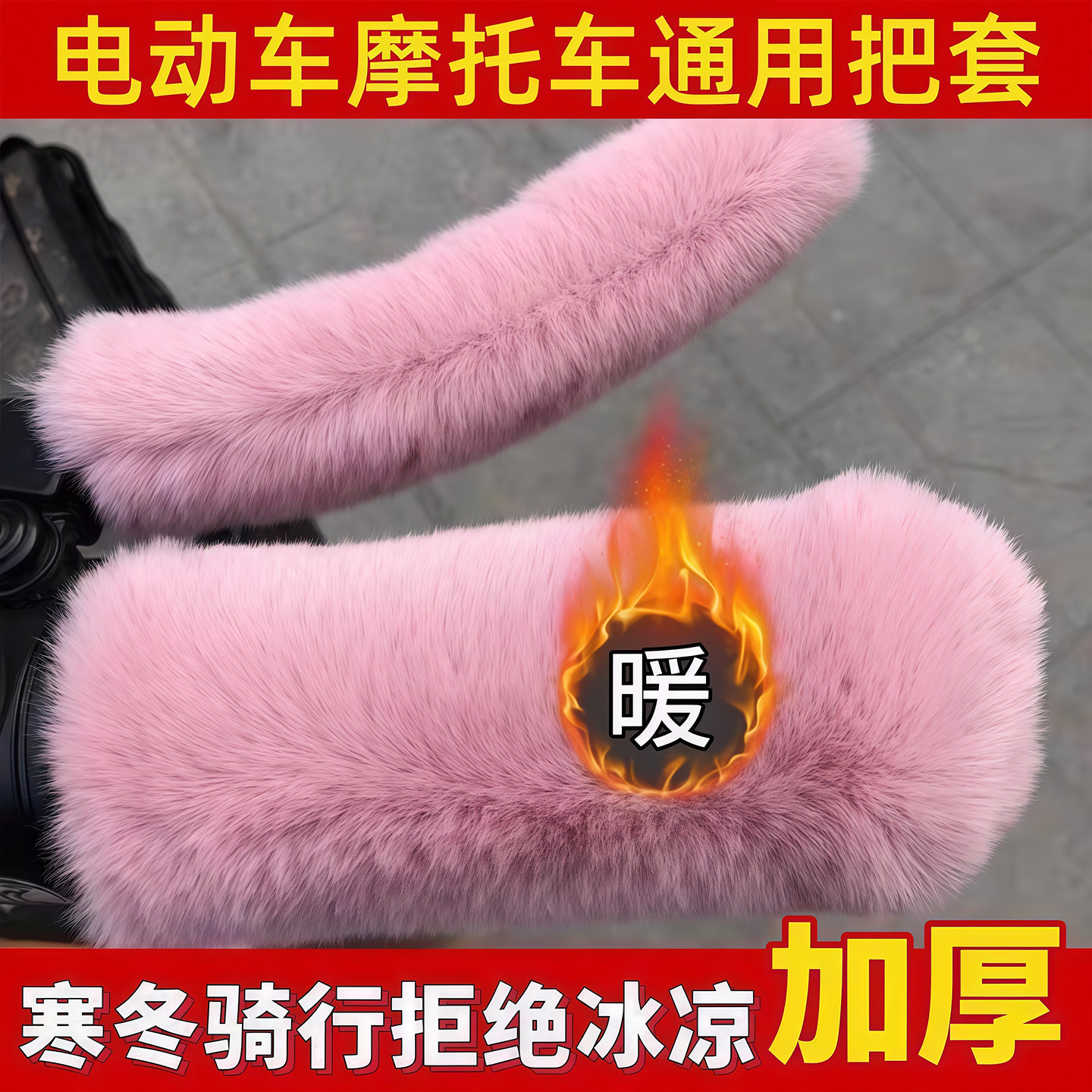 电动车毛绒把手套冬季 保暖防寒防滑电瓶车摩托车三轮车自行车通用