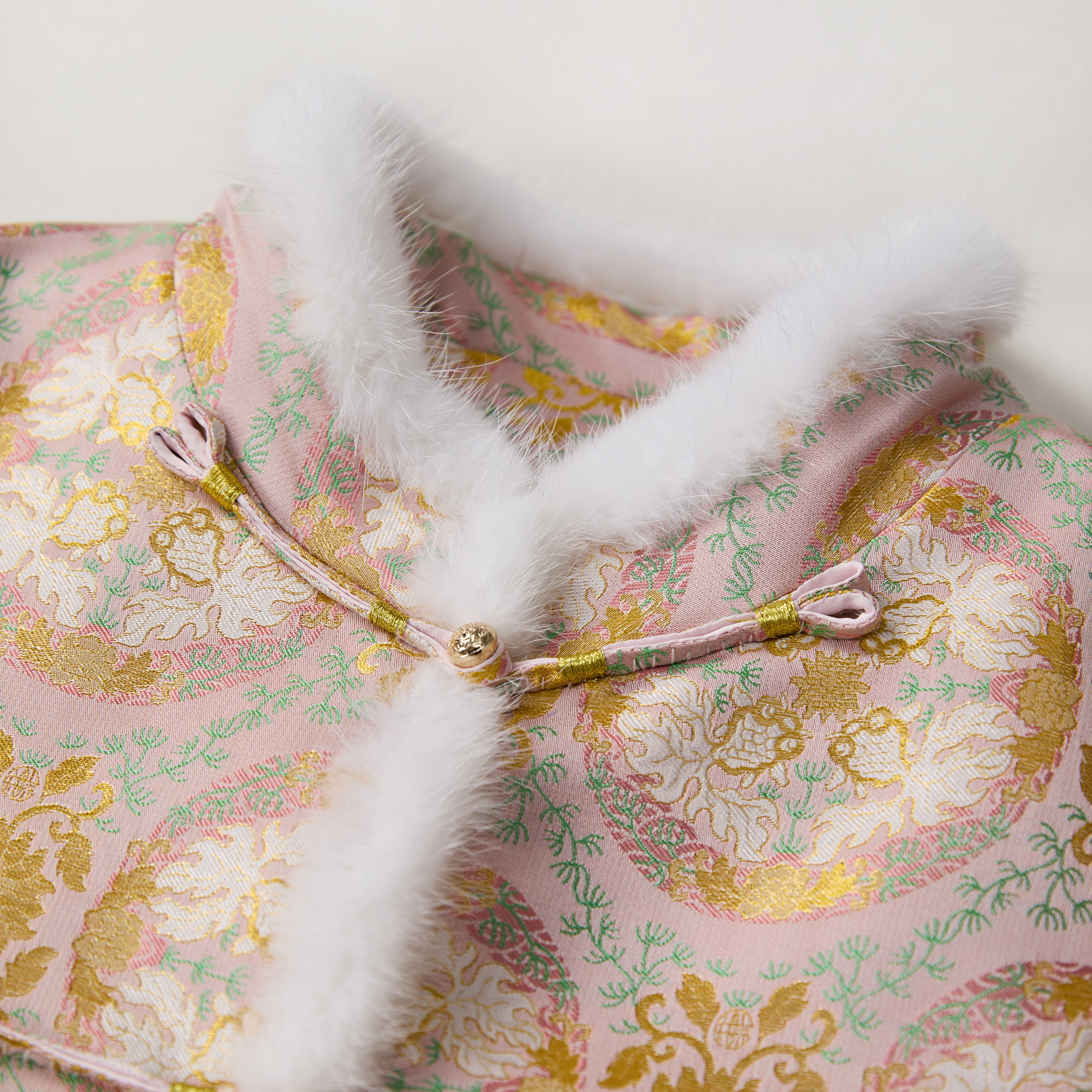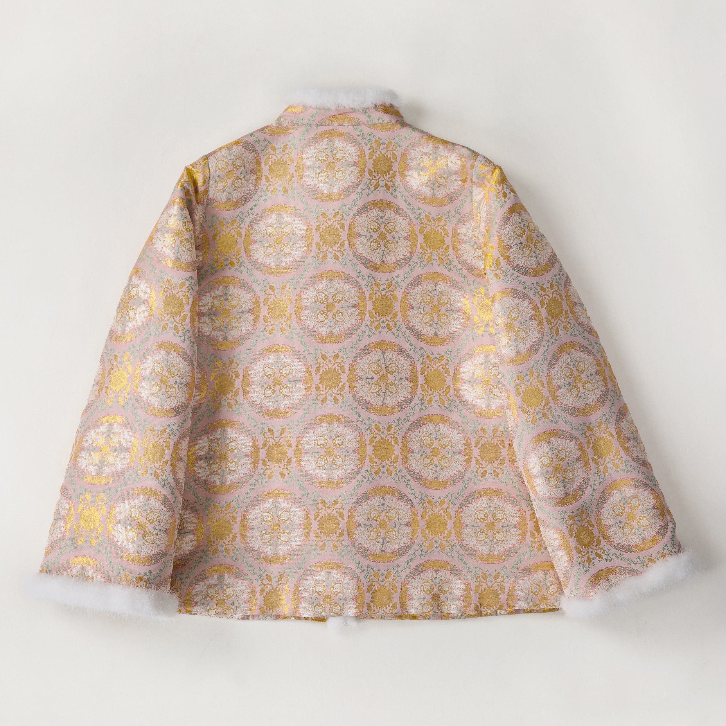 钱小萍宋锦金鱼戏莲棉服新中式 国风日常百搭手工盘扣水貂毛带钢印