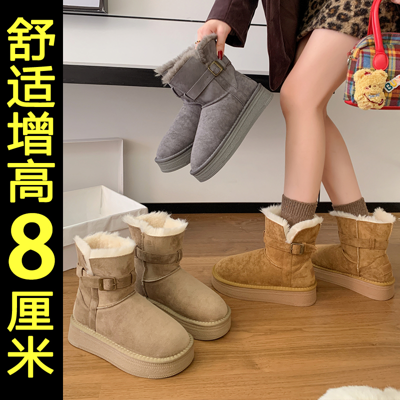内增高毛毛棉靴子 加厚保暖东北棉鞋 厚底中筒雪地靴女2025冬季 新款