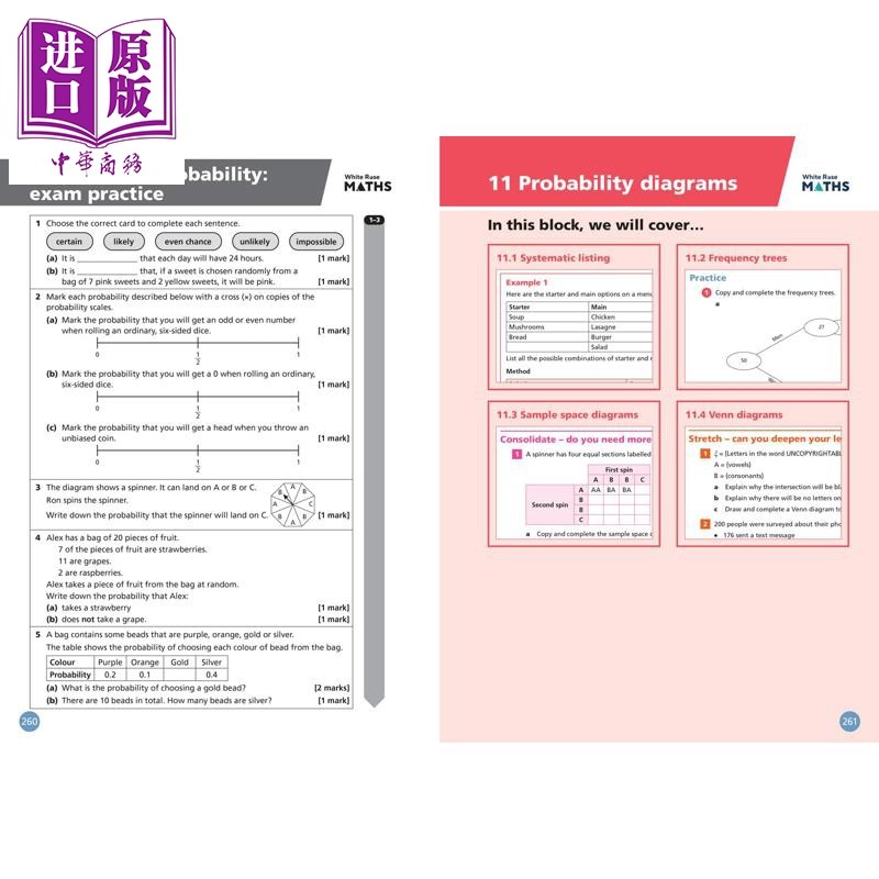 Student KS3 Rose 柯林斯白玫瑰数学中学阶段 Book 中商原版 AQA GCSE 1课程教材含答案White 爱德思Edexcel Maths