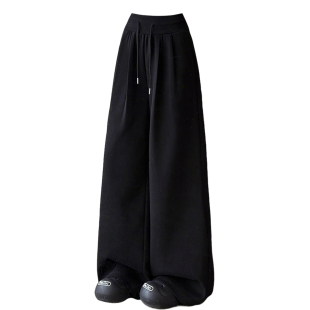 女宽松遮肉显瘦慵懒风阔腿卫裤 胖mm黑色垂感不贴腿休闲裤 女装 大码