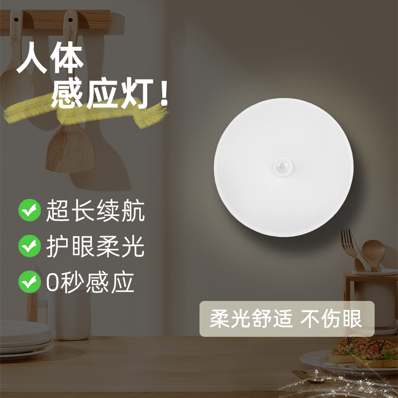 人体自动感应灯小夜灯卧室床头充电人来即亮厕所楼梯夜灯睡眠夜间