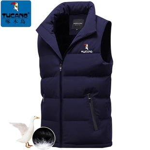 啄木鸟男士 立领外套加厚保暖坎肩背心休闲马夹男 羽绒棉马甲秋冬季