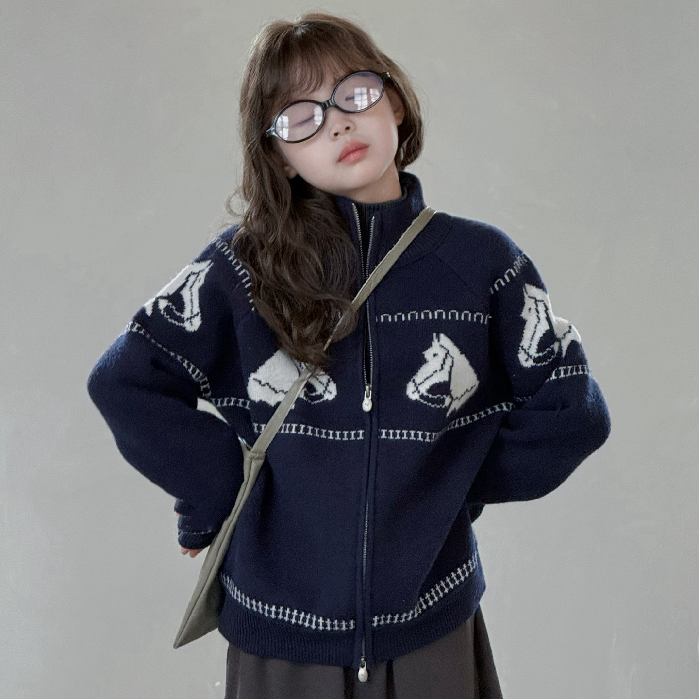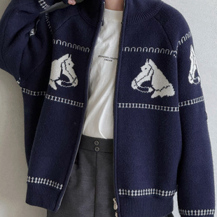 半高领设计感针织开衫 新款 洋气紫色立领方扣毛衣女2025年春季 韩版