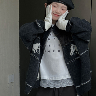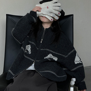 lemanism卡通猫咪马海毛毛衣男女潮牌宽松慵懒针织衫 秋冬潮牌线衫