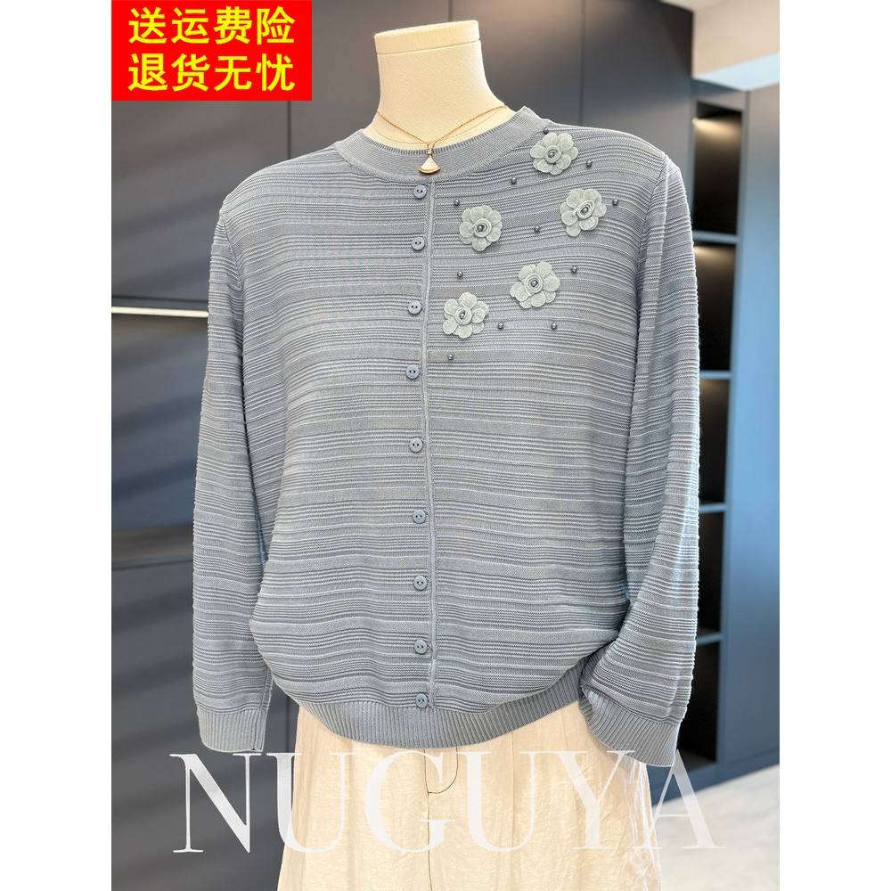 妈妈秋装 2025新款 春秋翻领打底衫 上衣中老年女装 薄毛衣 碎花针织衫