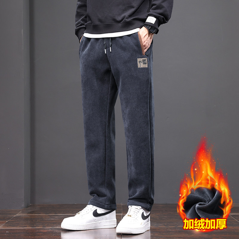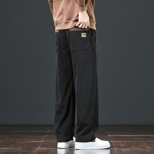 潮牌宽松直筒灯芯绒卫裤 重磅百搭运动长裤 男秋冬季 加绒加厚休闲裤