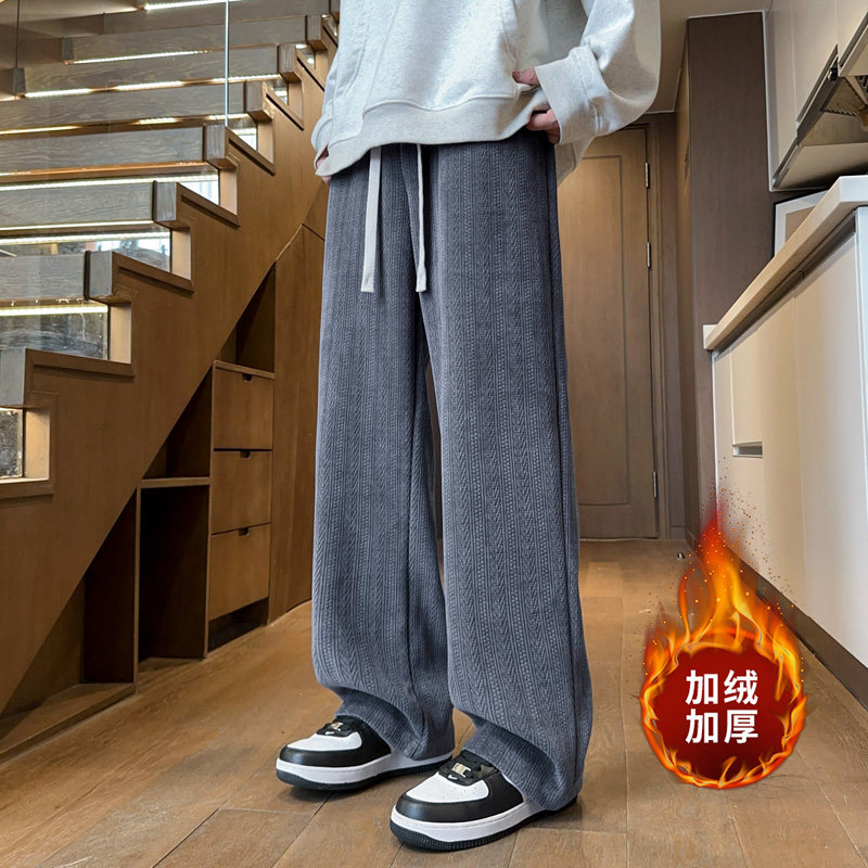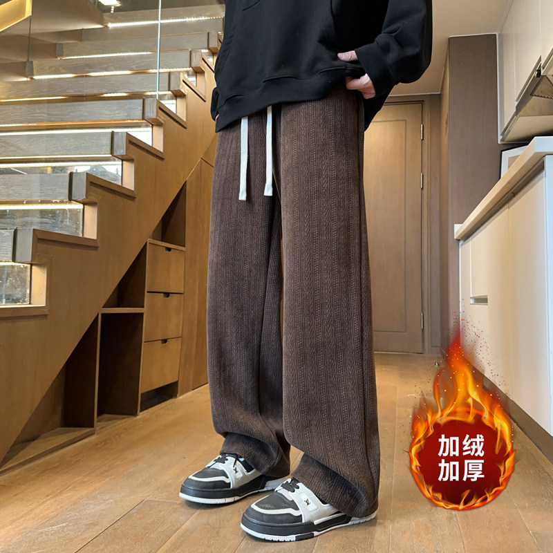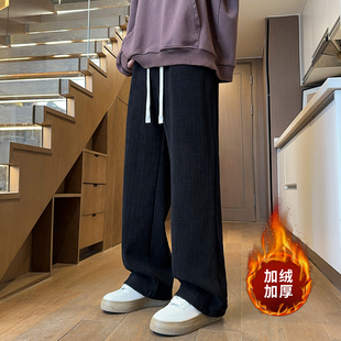 麦穗休闲裤 2025新款 加绒厚款 直筒裤 裤 潮牌垂感拖地长裤 子男秋冬季