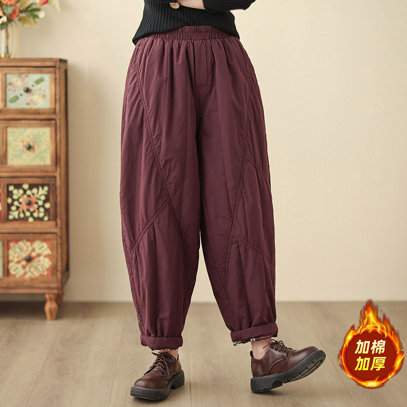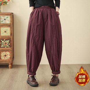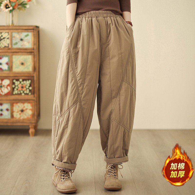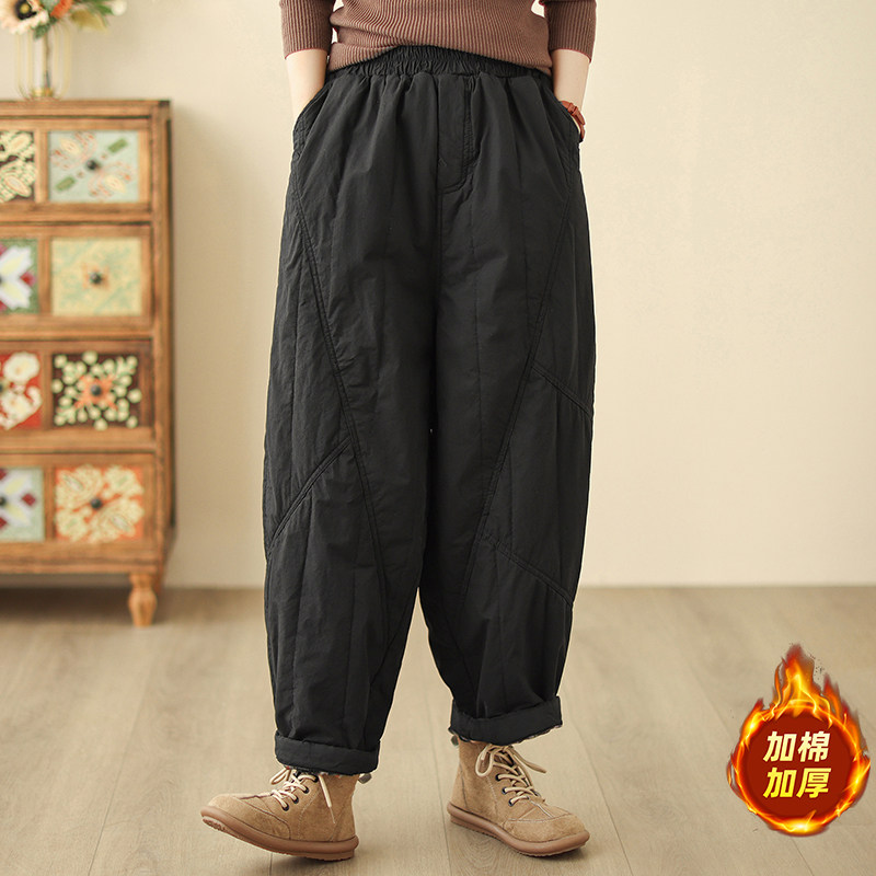 加棉加厚夹棉棉裤 纯色长裤 女松紧腰保暖哈伦裤 宽松版 子 女 冬季