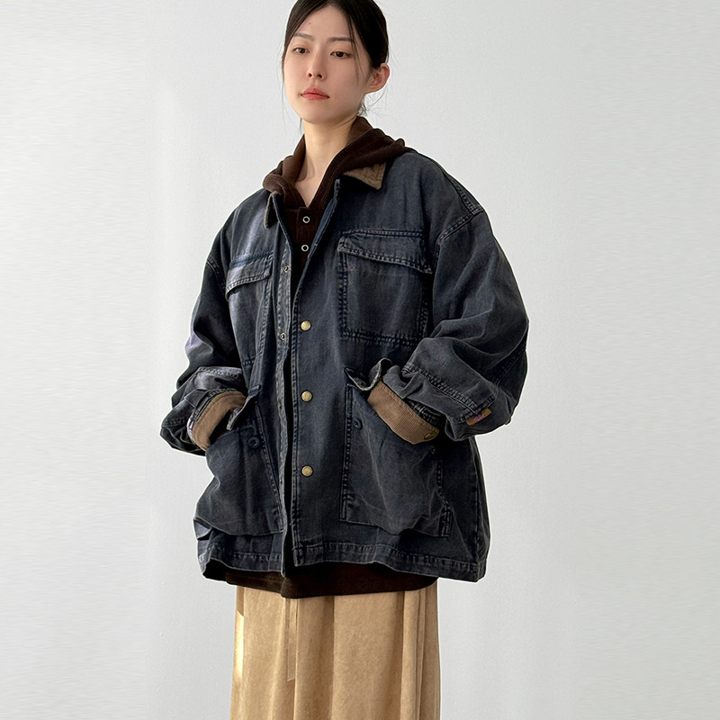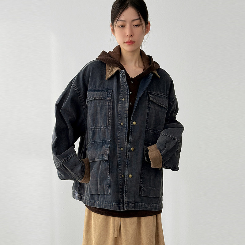 cotton pigmented work jacket 水洗夹克外套 韩国代购 unisex