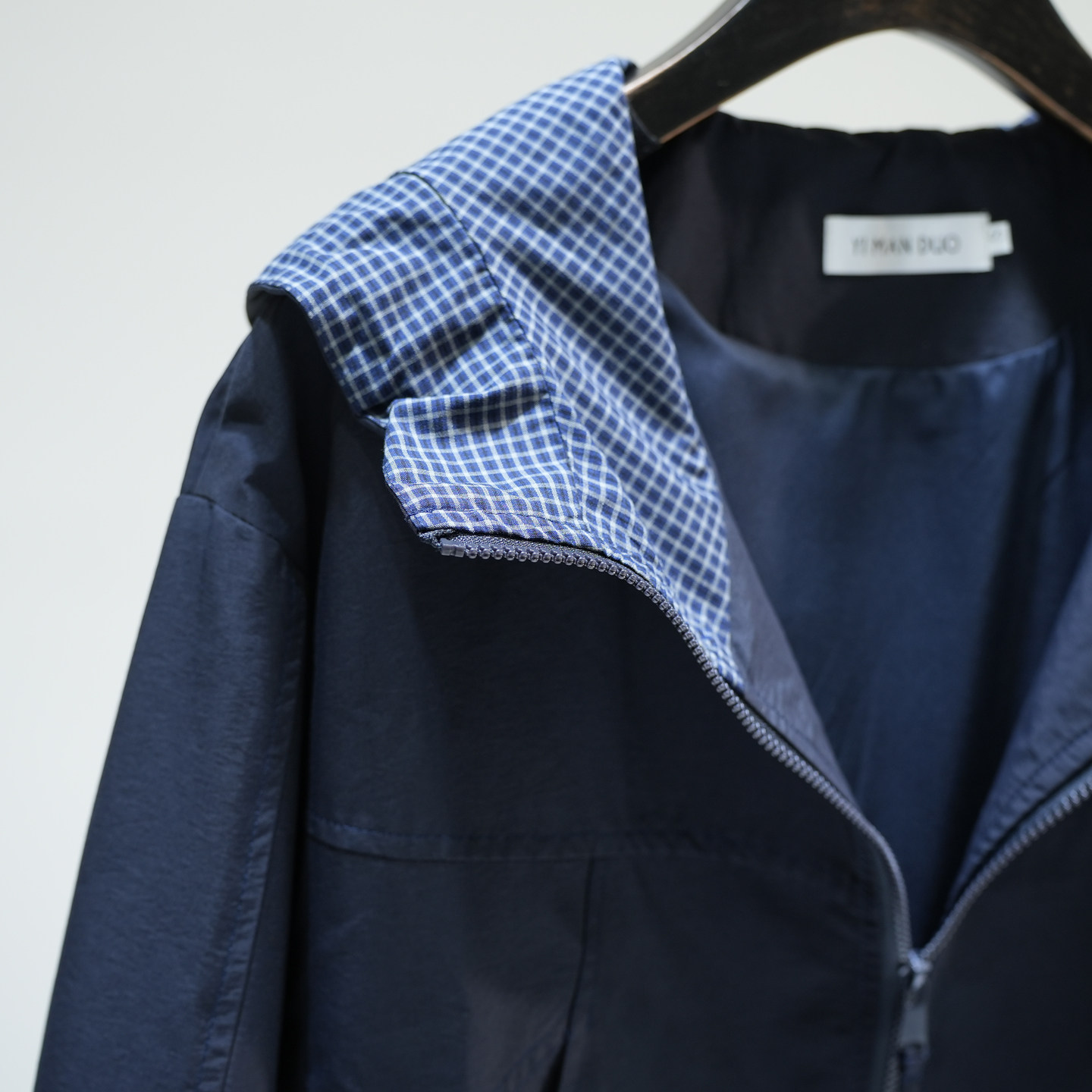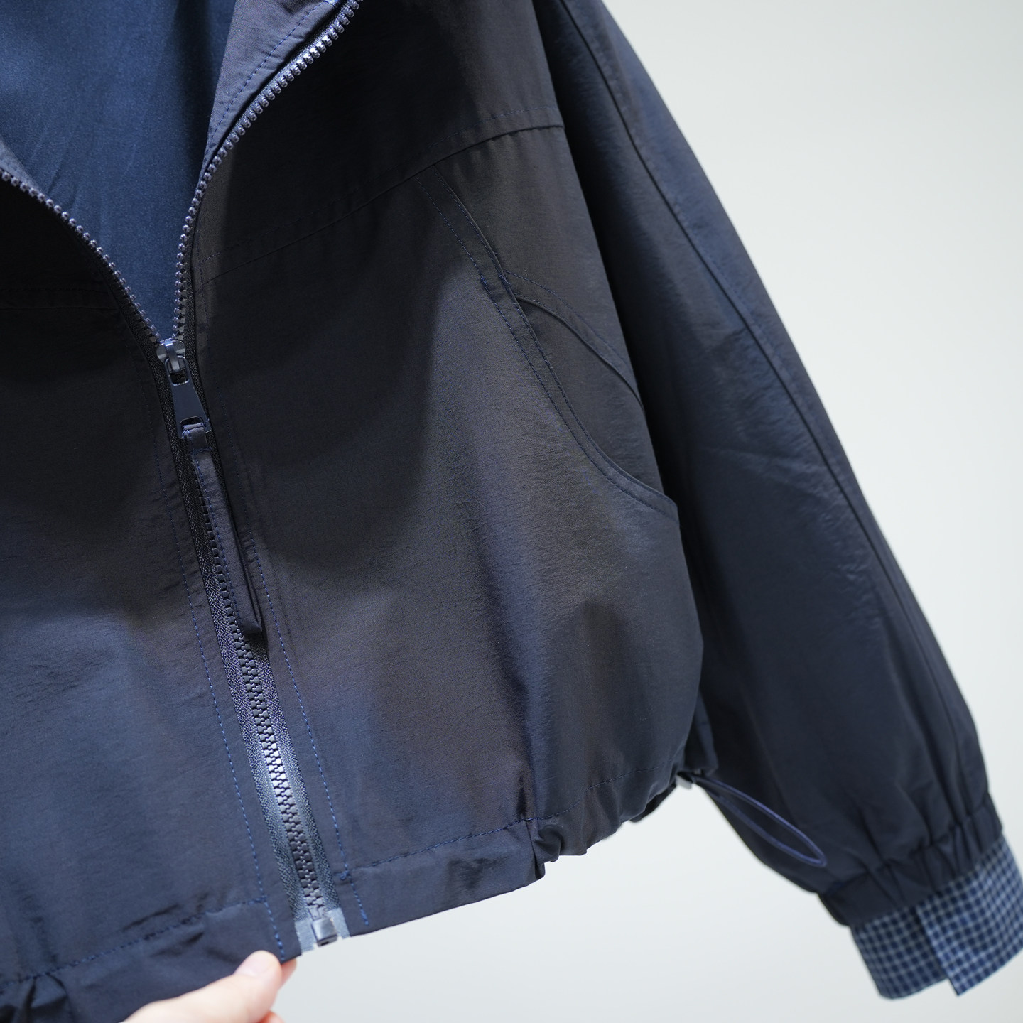 休闲百搭工装 新款 夹克 外套女2025秋季 设计感藏青色拼格子连帽短款