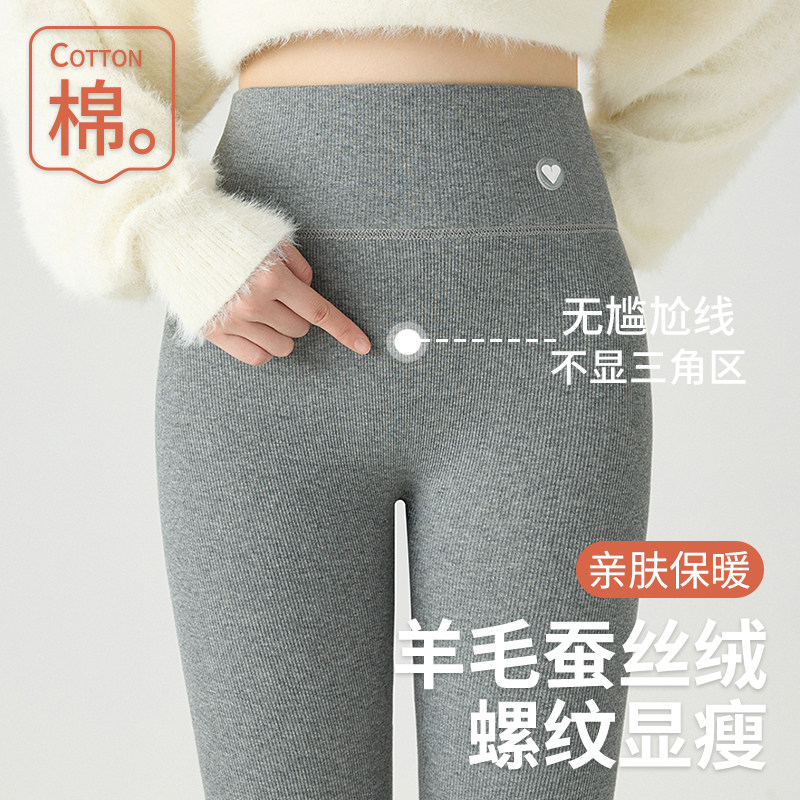 菇娘家澳洲美丽诺羊毛灰色打底裤 袜 女冬外穿加厚保暖压力瘦腿连裤