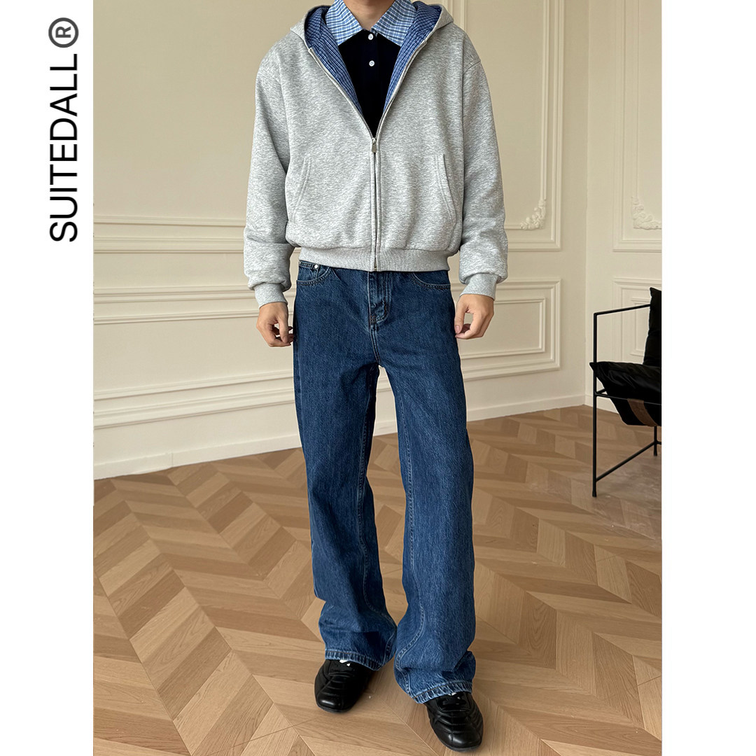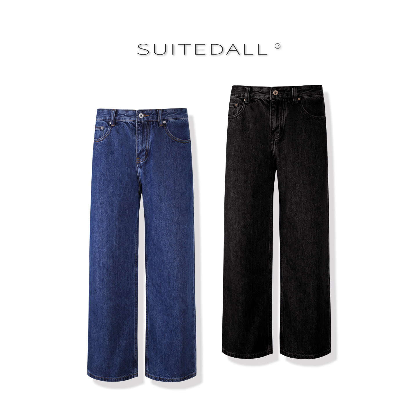子 直筒基础百搭休闲长裤 SUITEDALL蓝黑ROW风丹宁牛仔裤 13.5oz素版