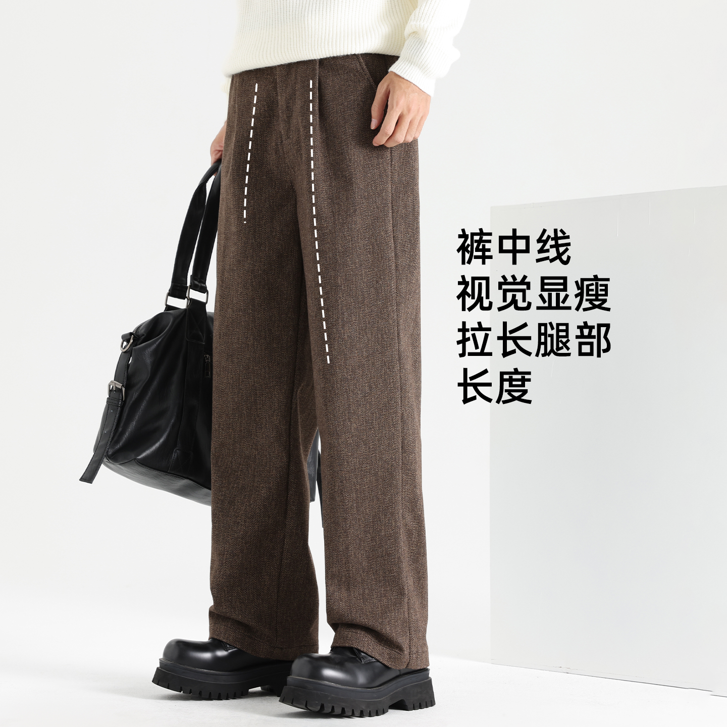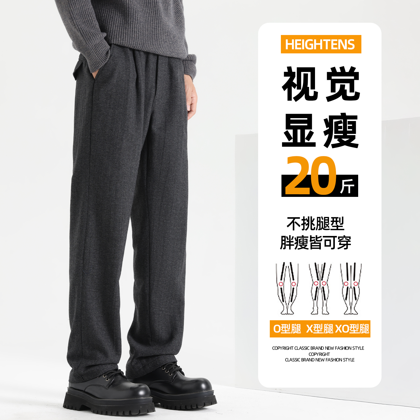 加厚西裤 直筒男士 长裤 回力西装 宽松秋冬黑色裤 男款 高级休闲裤 子 裤