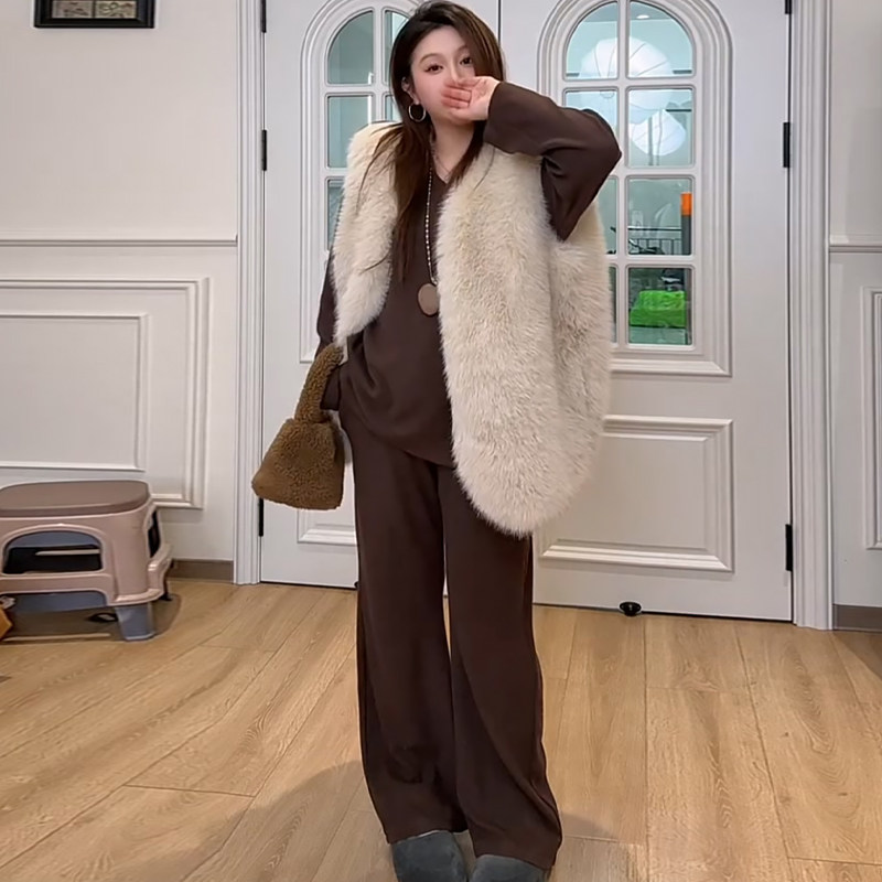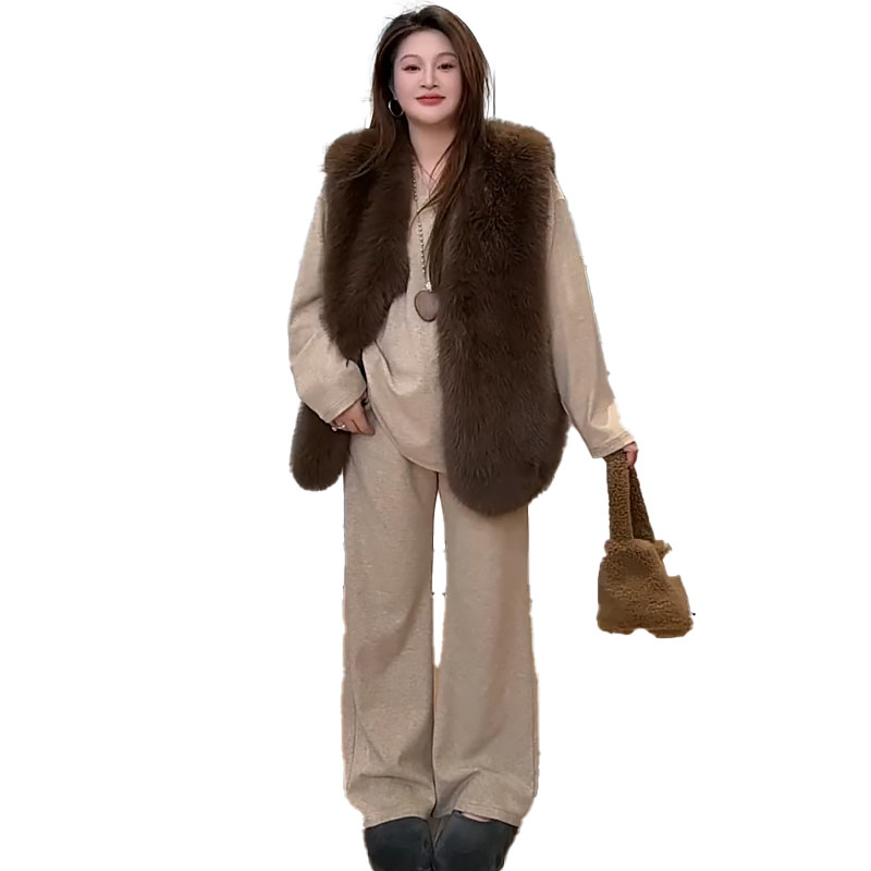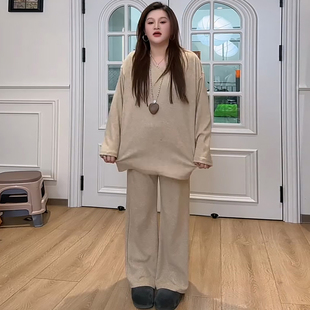女装 慵懒风环保马甲V领上衣阔腿裤 显瘦宽松大码 新款 胖mm2025冬季
