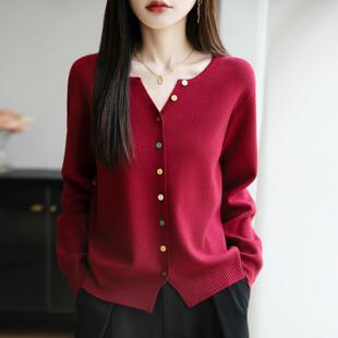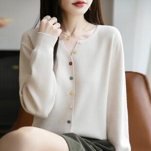 毛衣外套 百搭洋气软糯休闲韩版 彩色扣子小V领外搭针织开衫 女长袖