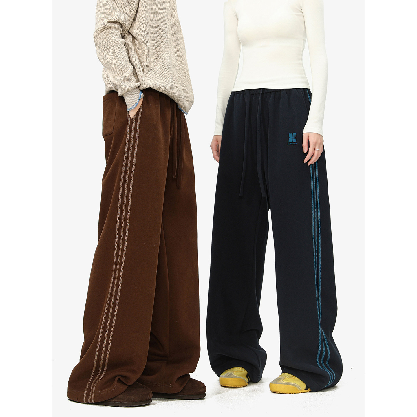美式 潮牌宽松直筒运动卫裤 复古条纹休闲裤 秋冬季 子男款 MANYSTON