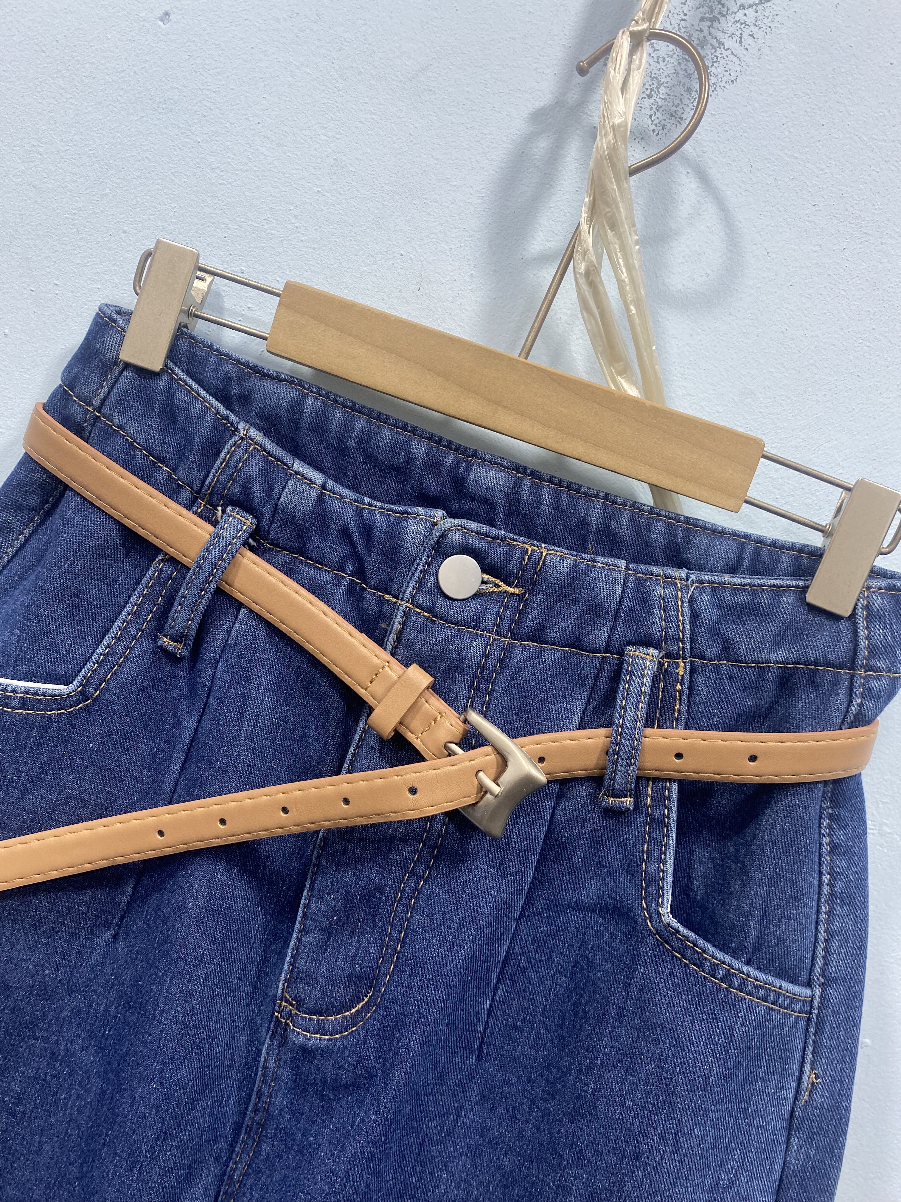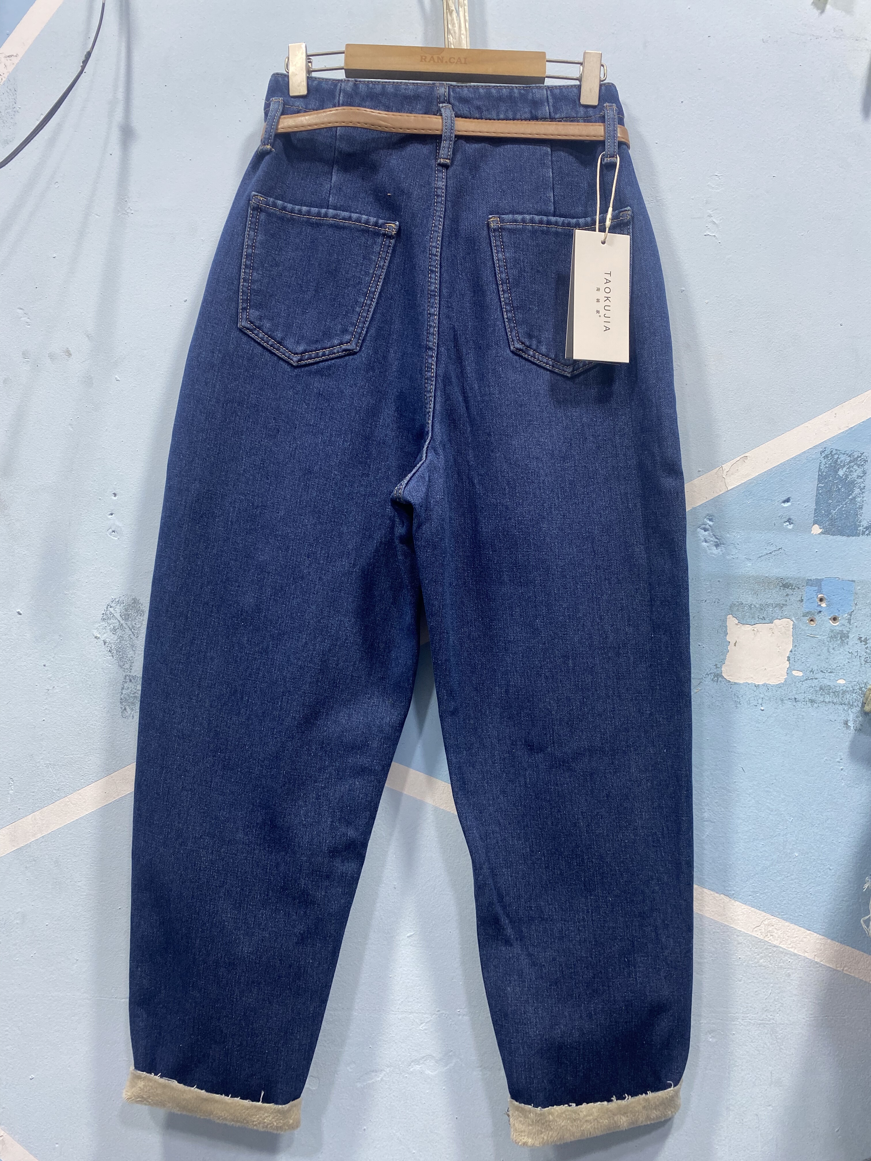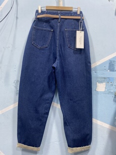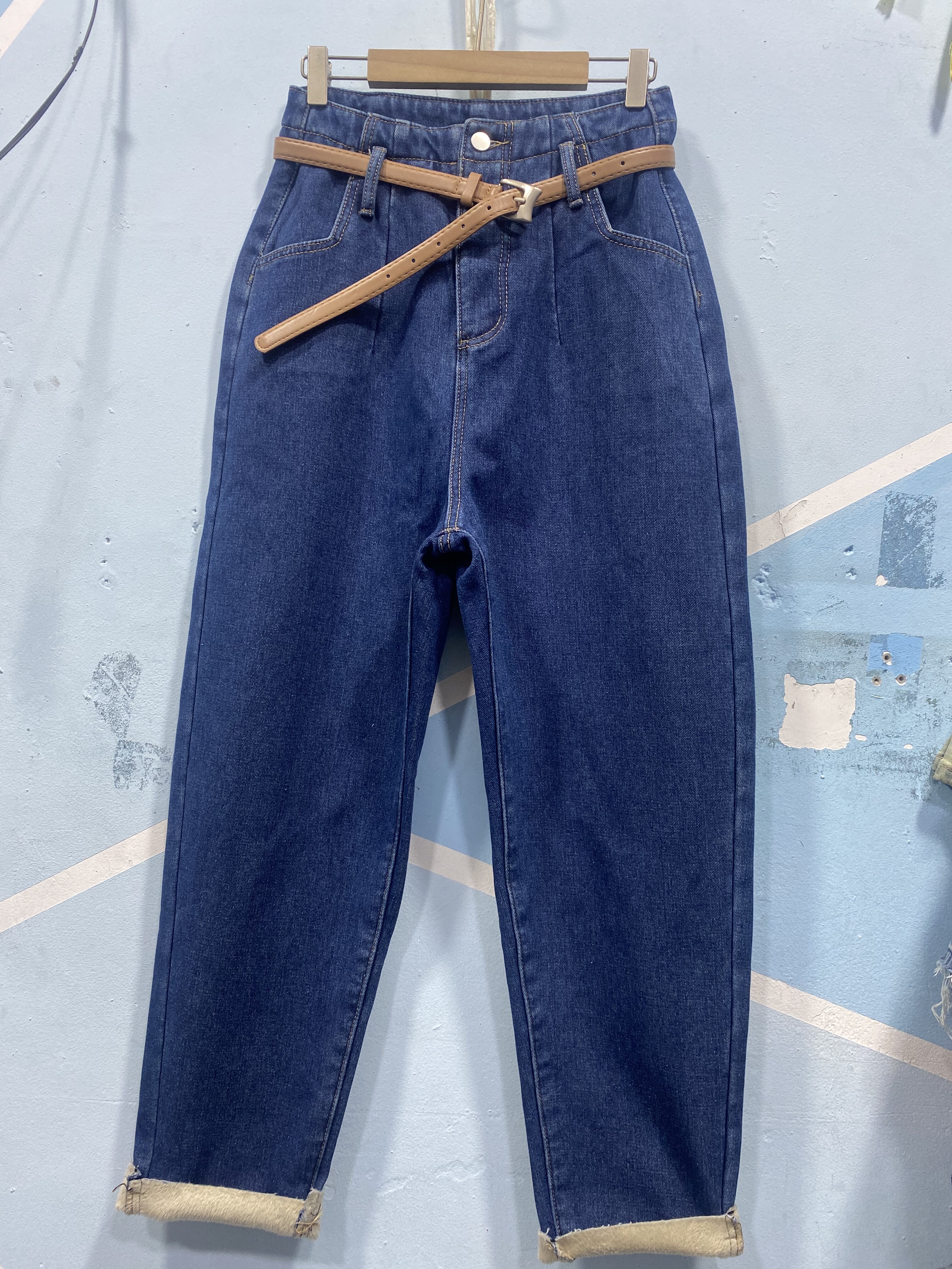 女冬季 无弹加绒花苞牛仔哈伦裤 加厚宽松百搭老爹牛仔裤 配腰带