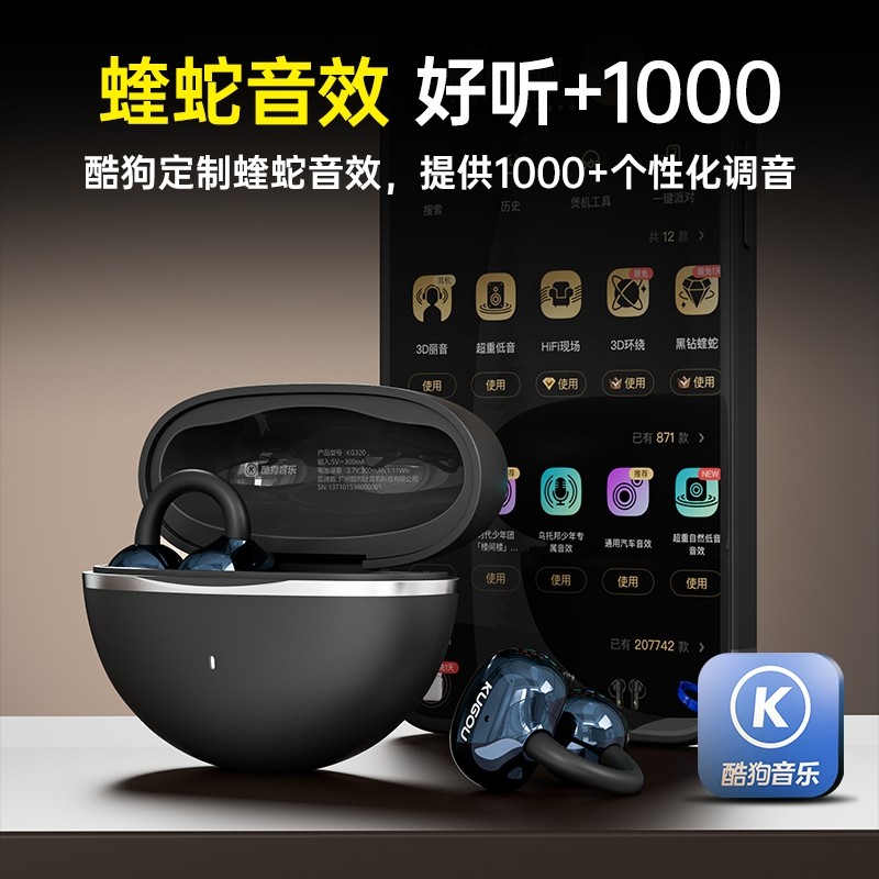 耳机KG320 开放式 酷狗6.0蓝牙耳机耳夹式 运动防汗超长续航2025新款