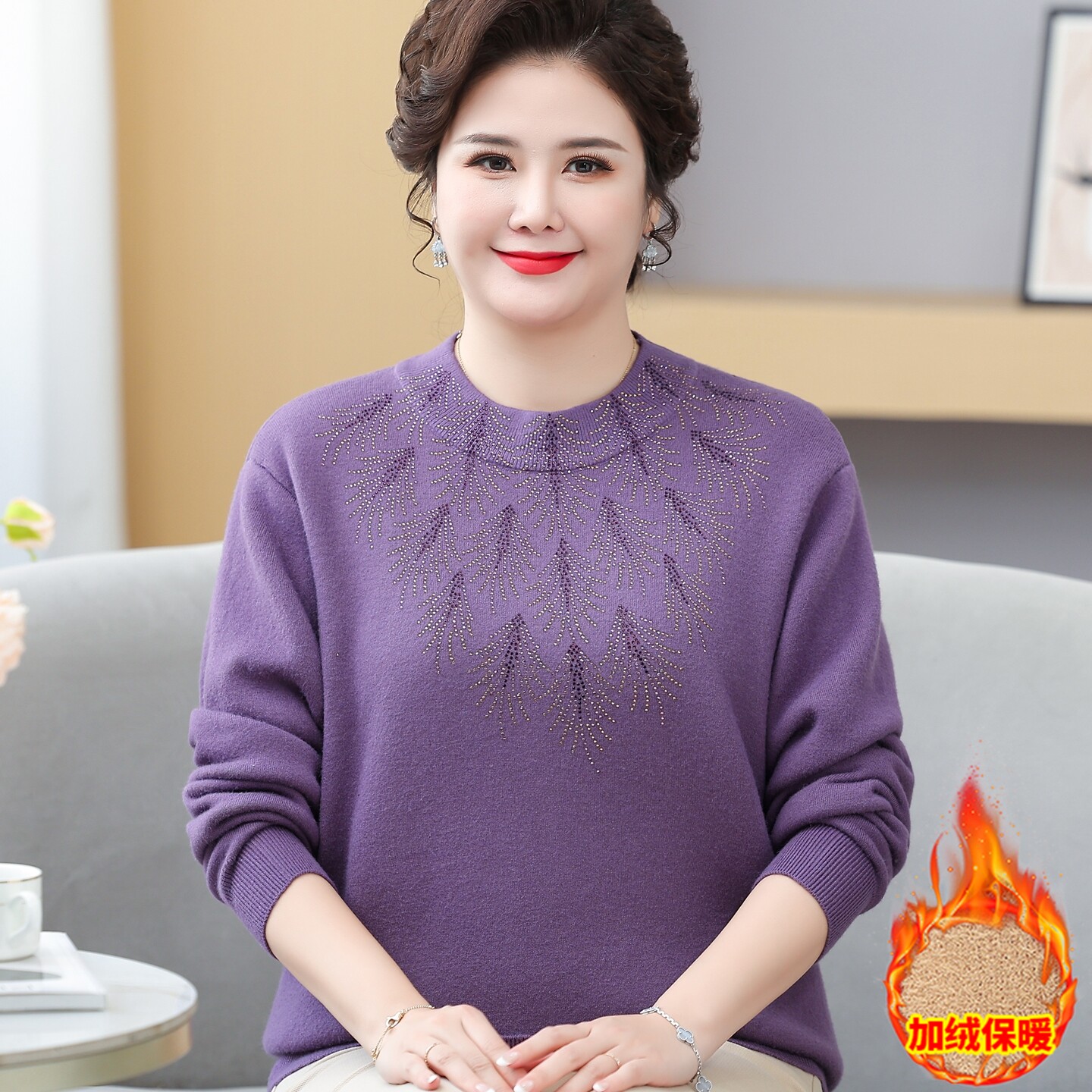 打底衫 中老年女加绒加厚保暖毛衣大码 加肥加大200斤胖妈妈秋冬装