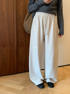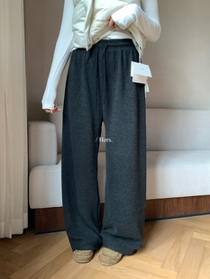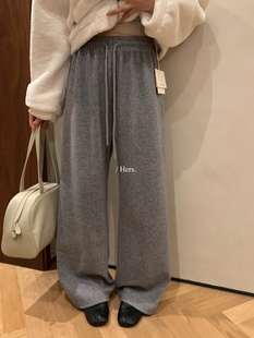 宽松显瘦休闲裤 羊毛针织阔腿裤 高腰抽绳直筒裤 加长拖地裤 女秋冬季