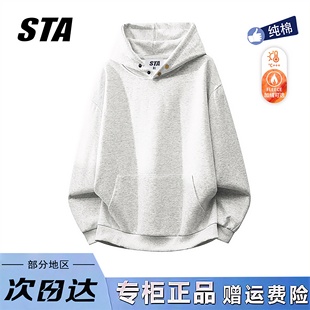 STA旗舰店美式 潮牌纯棉加绒加厚情侣外套 纽扣连帽卫衣男女秋冬季