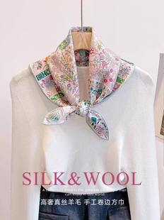 桑蚕丝真丝羊毛65丝毛混纺粉蓝色 高级感丝巾 浪漫女士方巾秋冬季