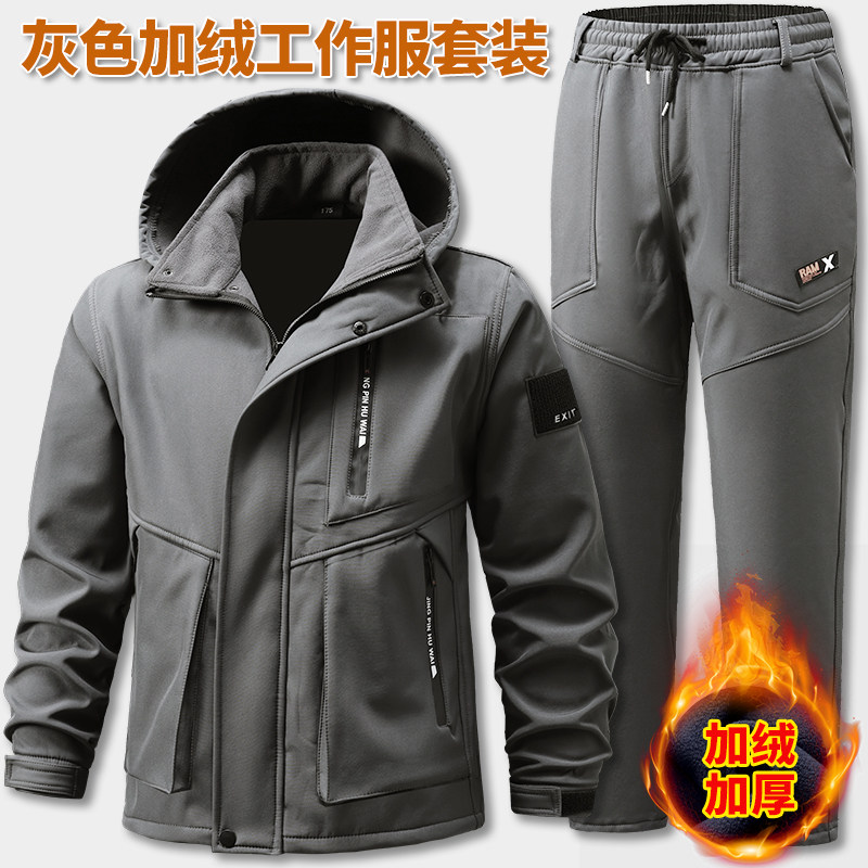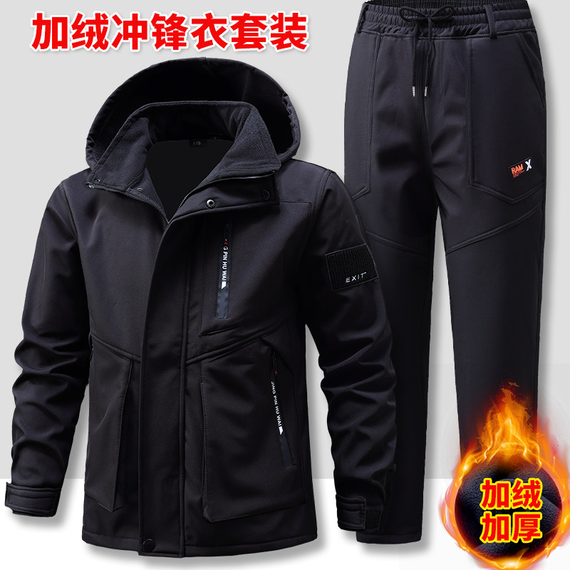 户外冲锋衣外套加绒防风保暖劳保工装 秋冬长袖 男士 休闲工作服套装