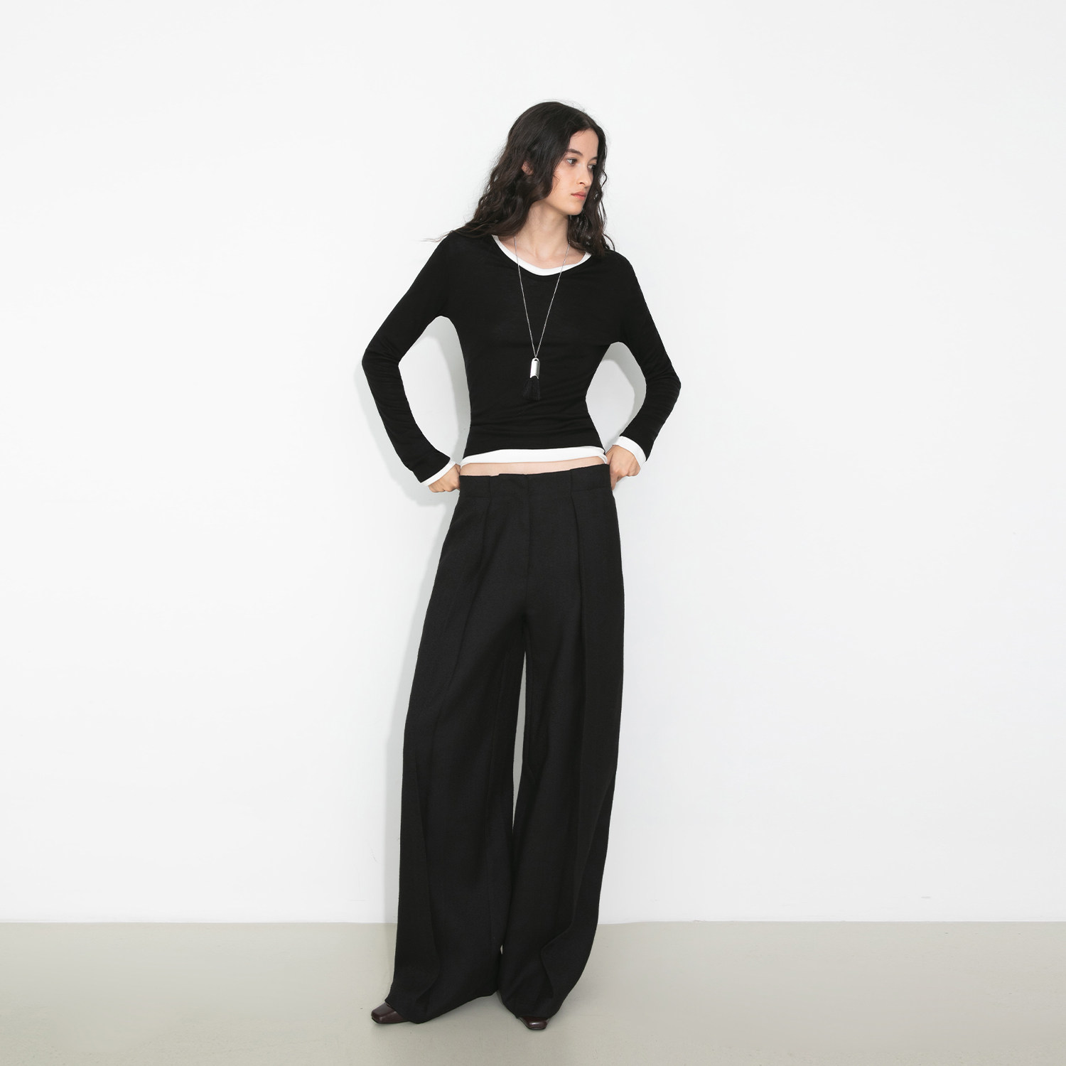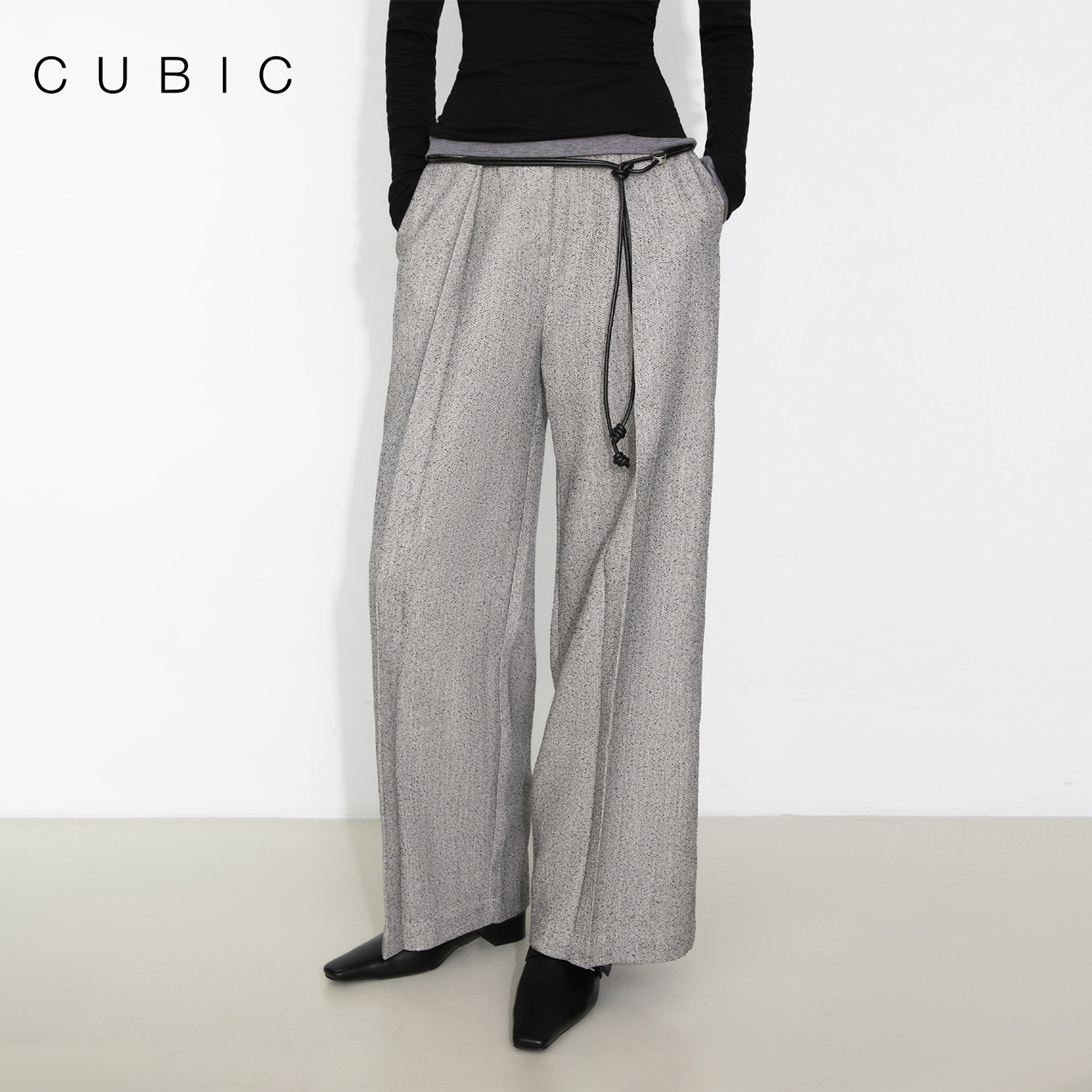 CUBIC休闲通勤百搭褶皱设计颗粒麻结感纯色直筒垂坠廓形西装 裤