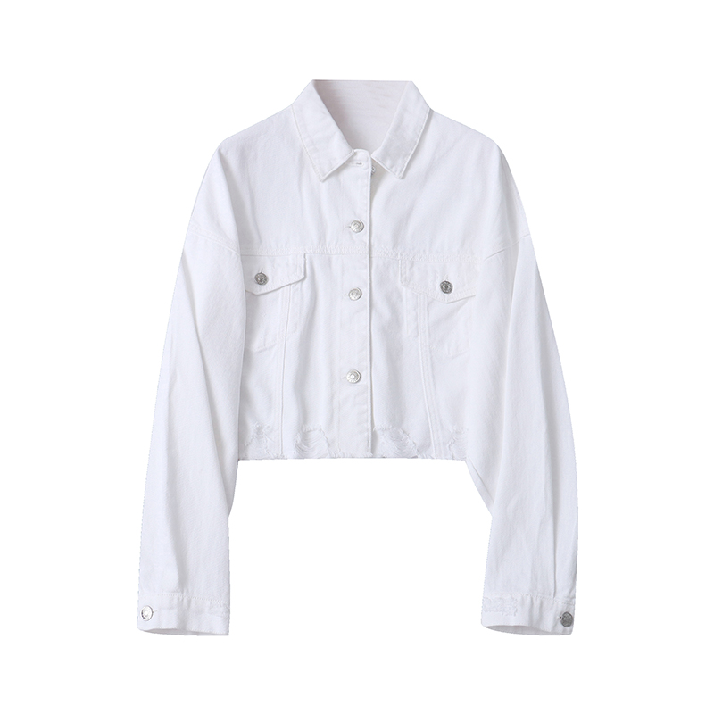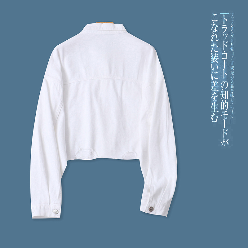 秋季 单排扣短款 新款 翻领长袖 破洞毛边上衣31454 外贸女装 牛仔外套