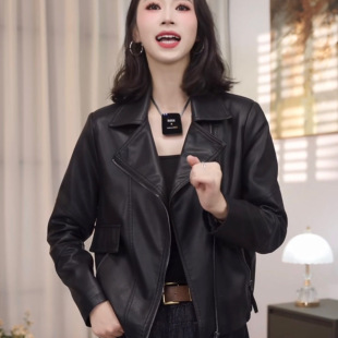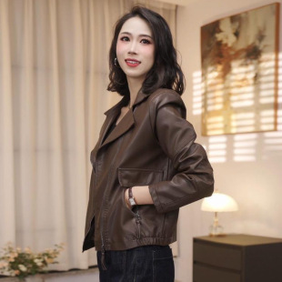 韩版 新款 翻领休闲宽松pu皮夹克机车服上衣 2026秋装 皮衣外套女短款